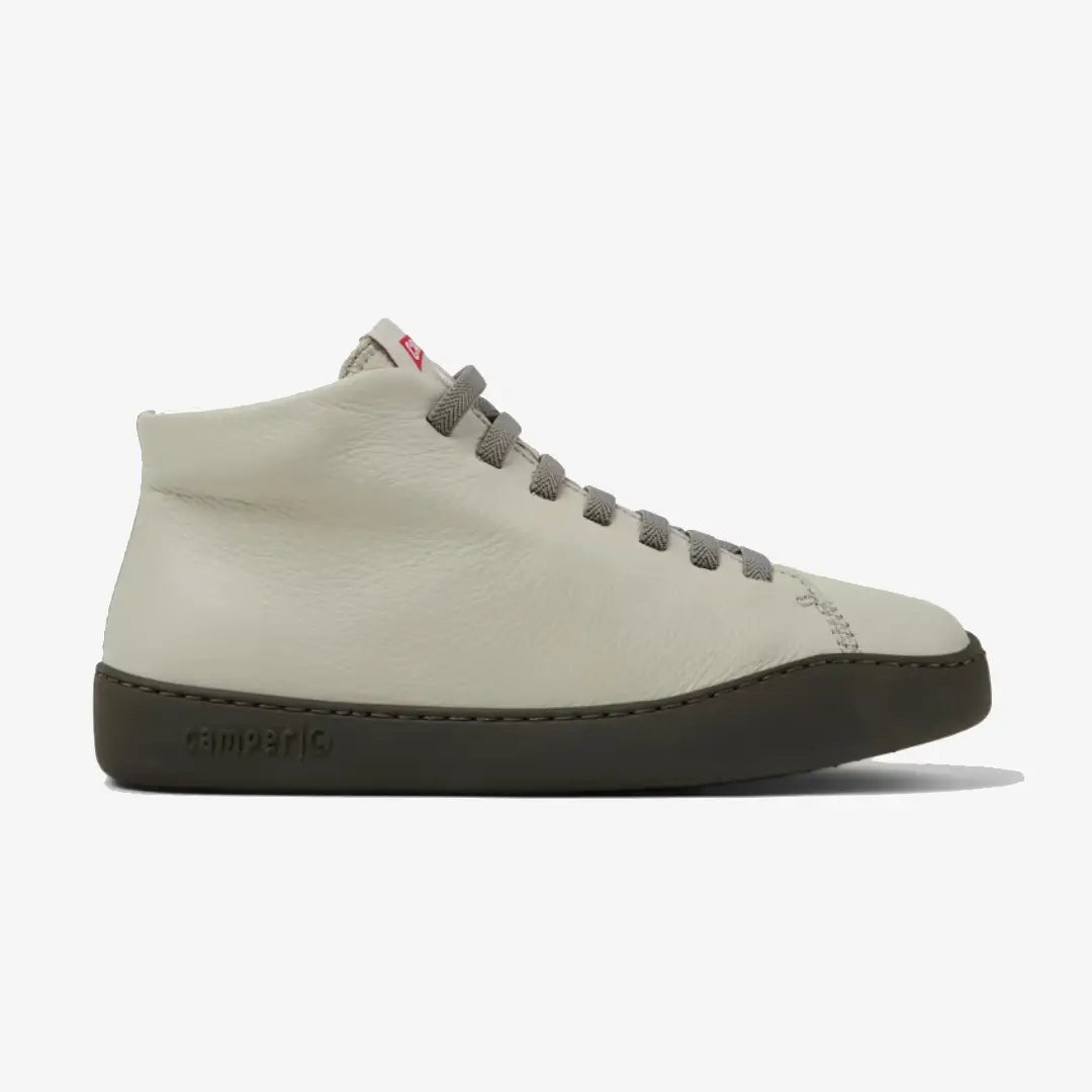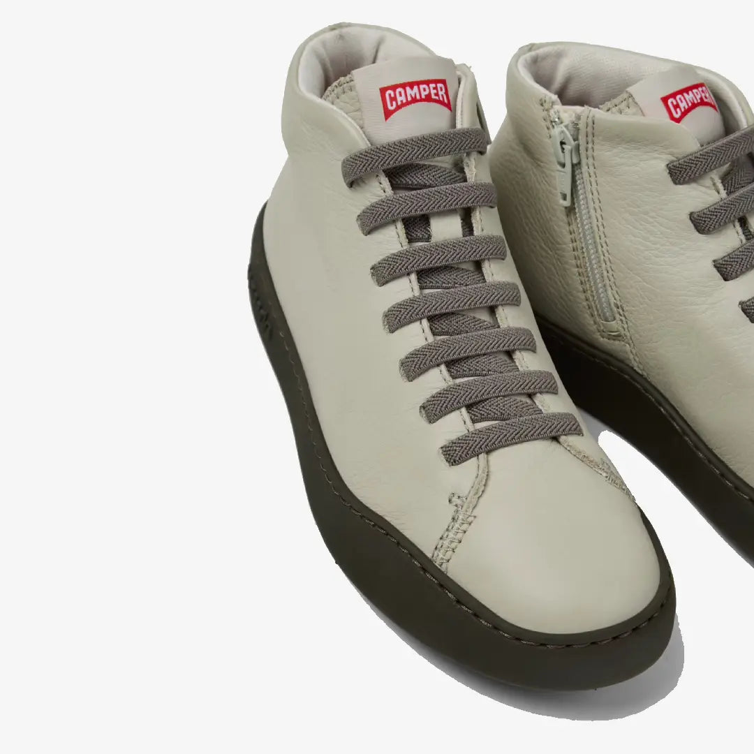 Graue Damenstiefeletten aus Rindsleder mit OrthoLite® Recycled™-Einlegesohlen, elastischen Schnürsenkeln und EVA-Sohlen.