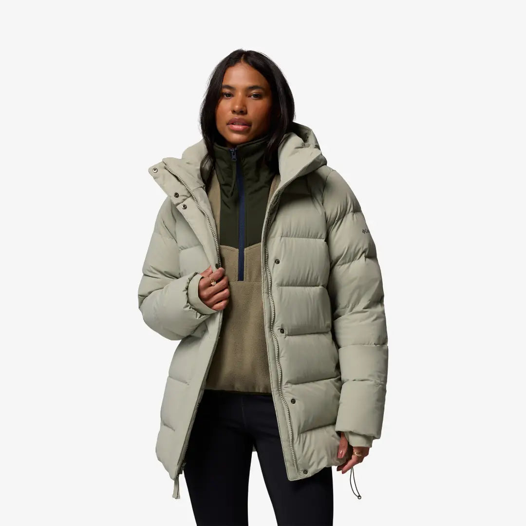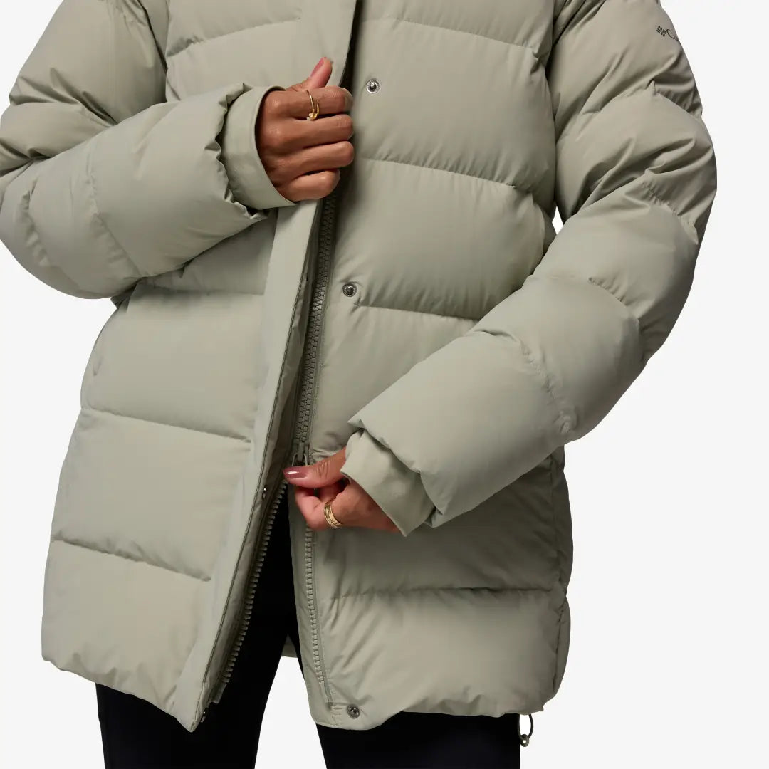 Trotzen Sie der Kälte mit Stil mit dieser gemütlichen langen Jacke, die mit Daunen der Füllkraft 650 gefüllt ist und Sie den ganzen Tag über warm hält.