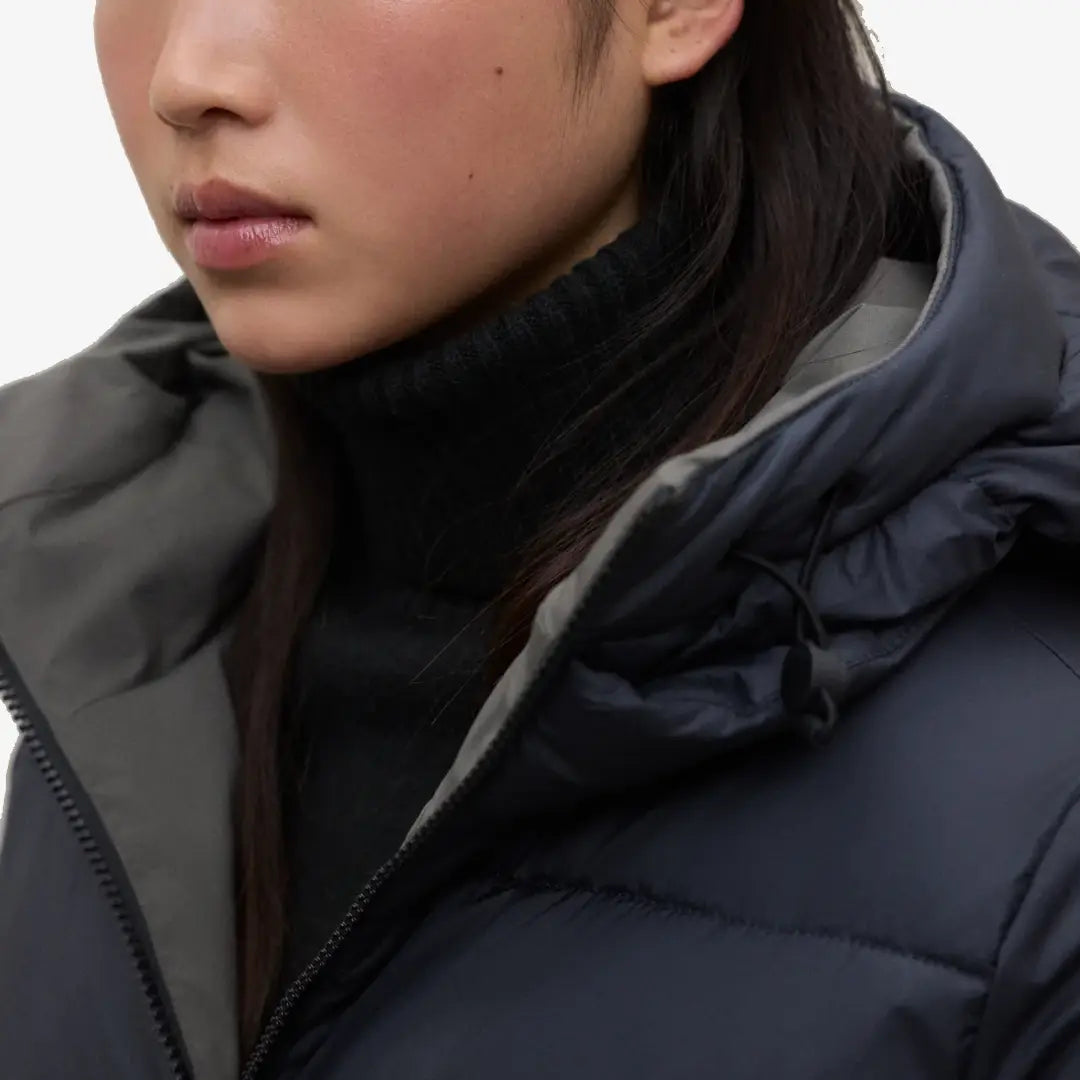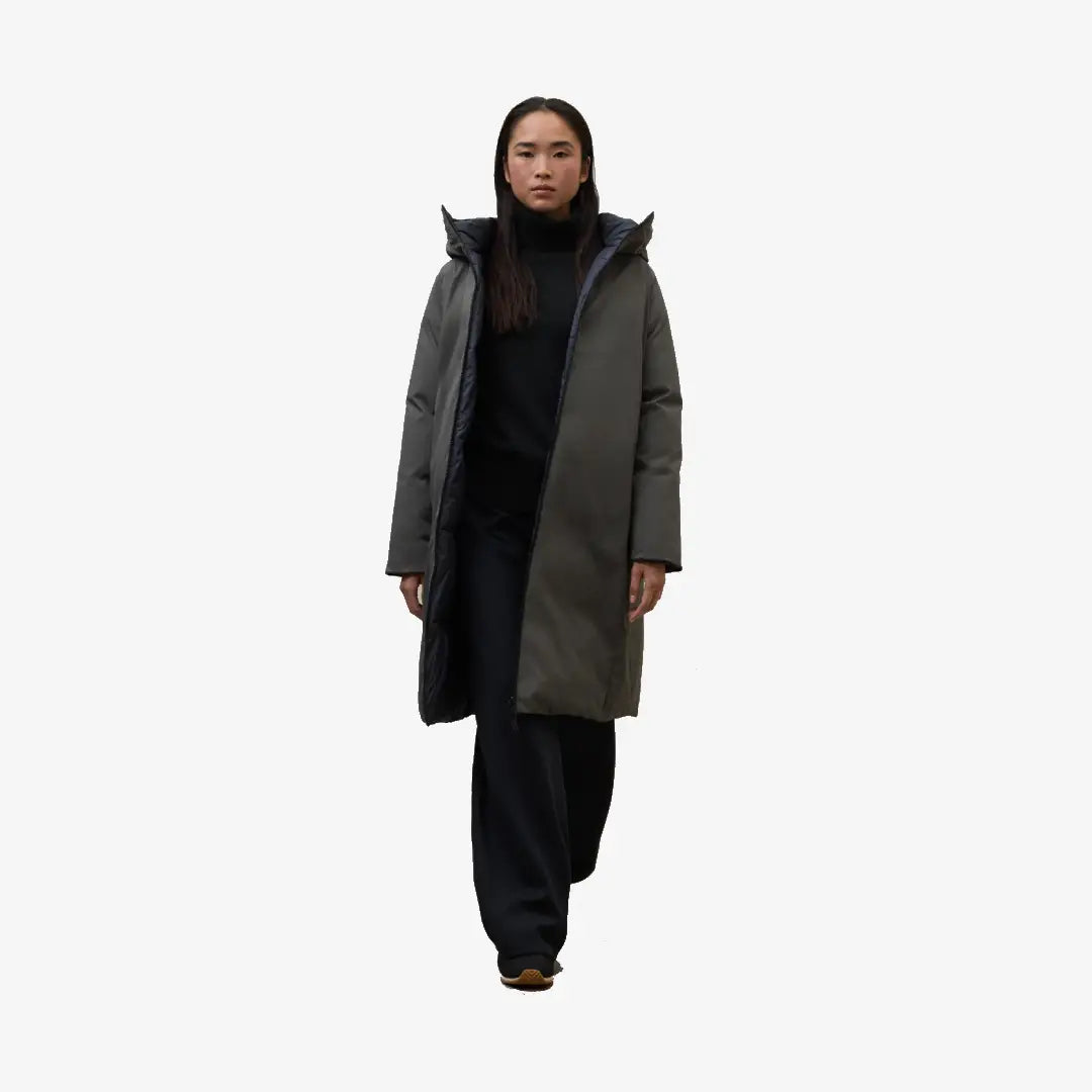 Der Baru-Mantel besteht zu 59 % aus recyceltem Polyester und zu 41 % aus Sorona®. Sorona® ist ein Biopolymer, das aus Abfällen der Maisproduktion gewonnen wird und so den Druck auf fossile Brennstoffe reduziert. Es kann außerdem zusammen mit Polyester recycelt werden.