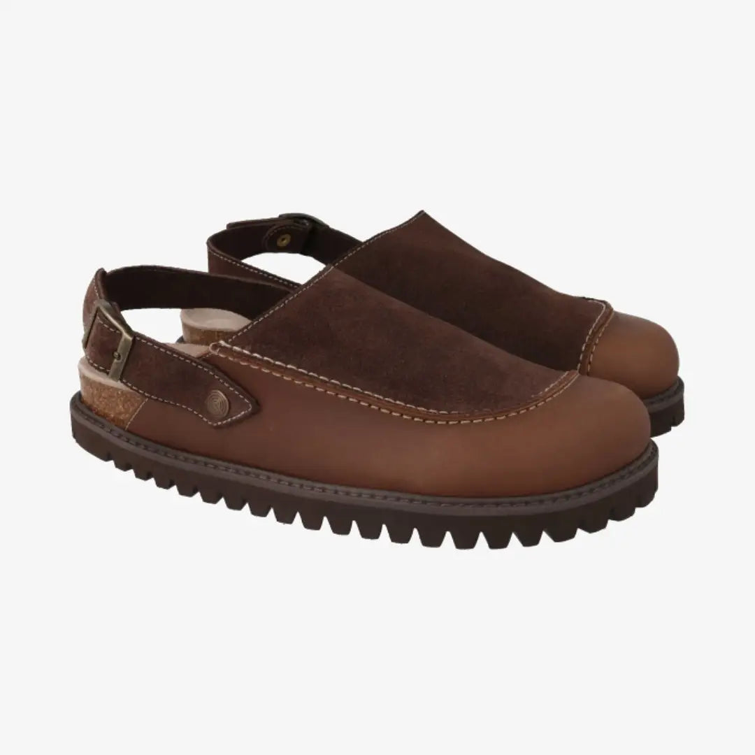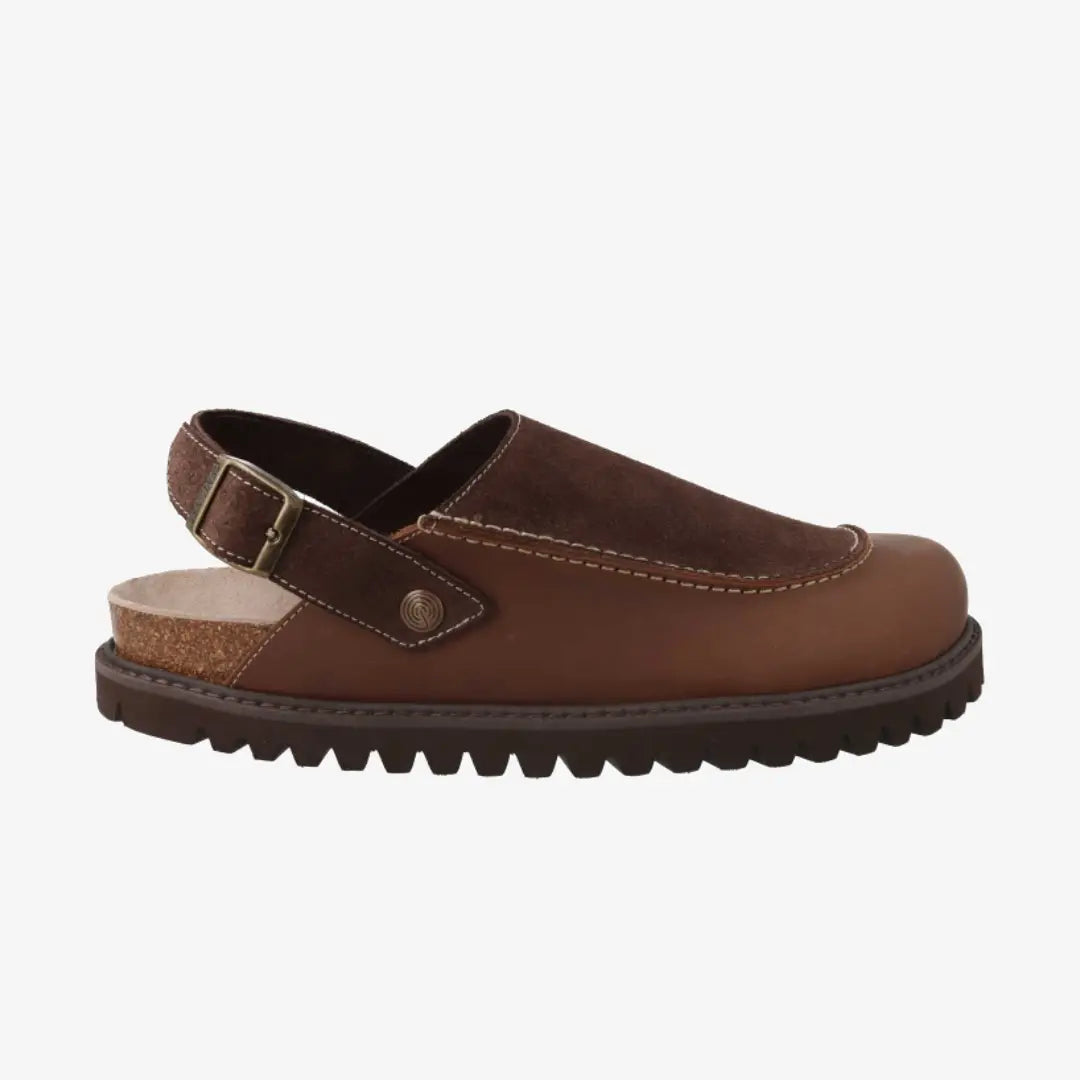 Lederclogs in einer Kombination aus Wildleder und Fell mit Animalprint, mit anatomischer Sohle und verstellbarer Knöchelschnalle. Von Lieferanten der Leather Working Group (LWG) mit Goldstatus zertifiziertes Leder.