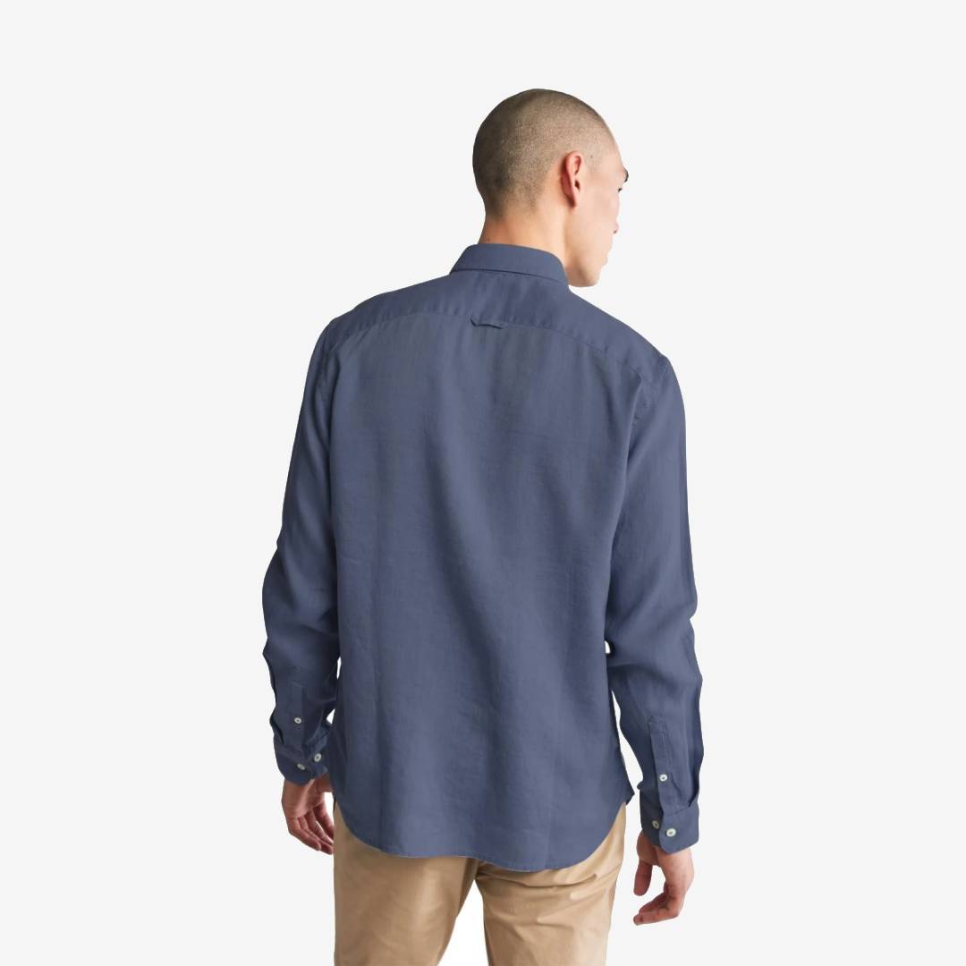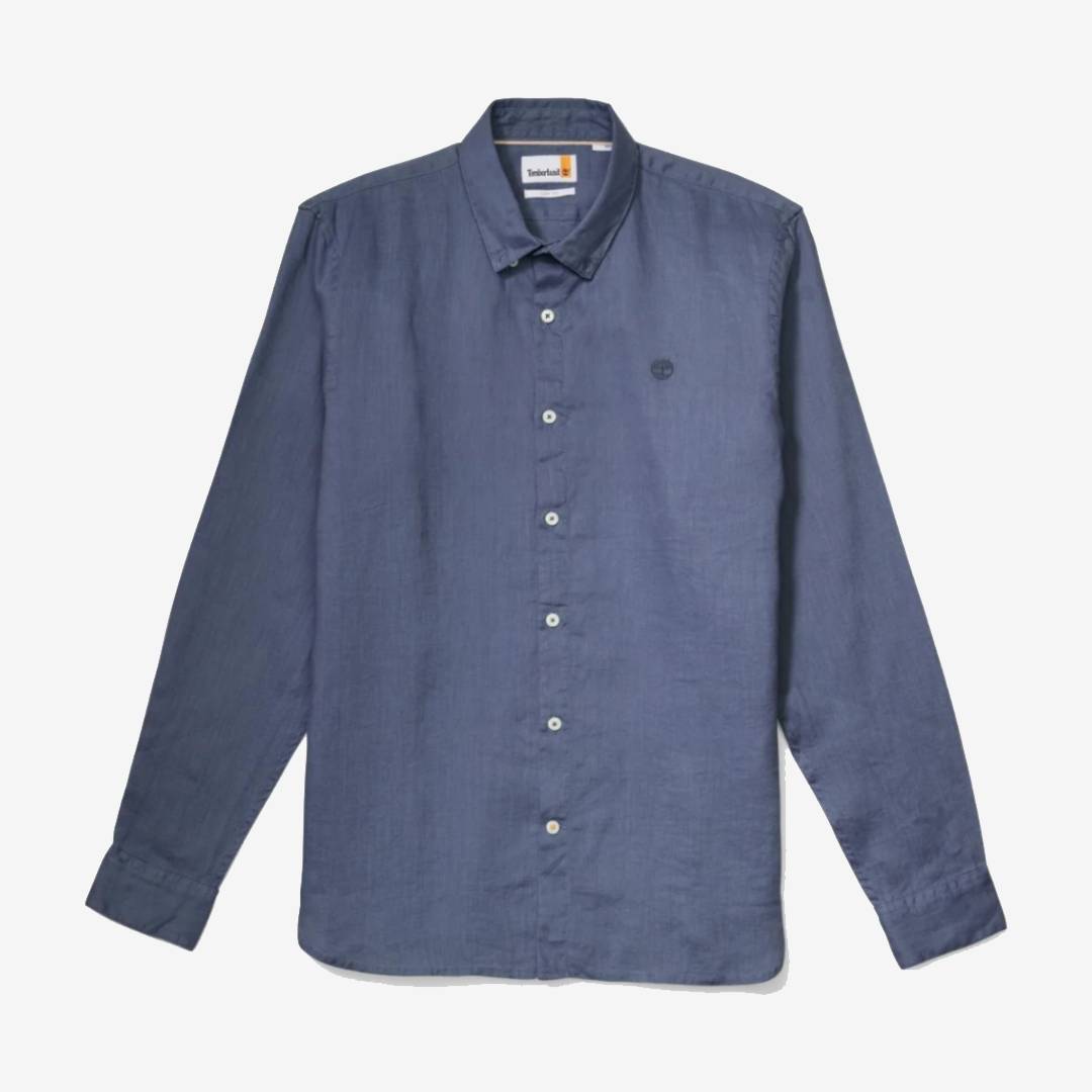 Dieses Herren-Langarmhemd aus 100 % Leinen verfügt über eine schmale Passform, abgerundete Manschetten, kontrastierende Paspeldetails und das auf der Brust aufgestickte Markenlogo.