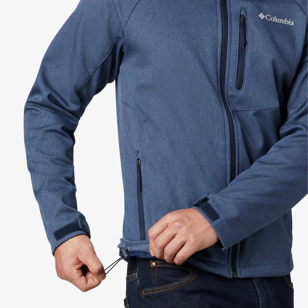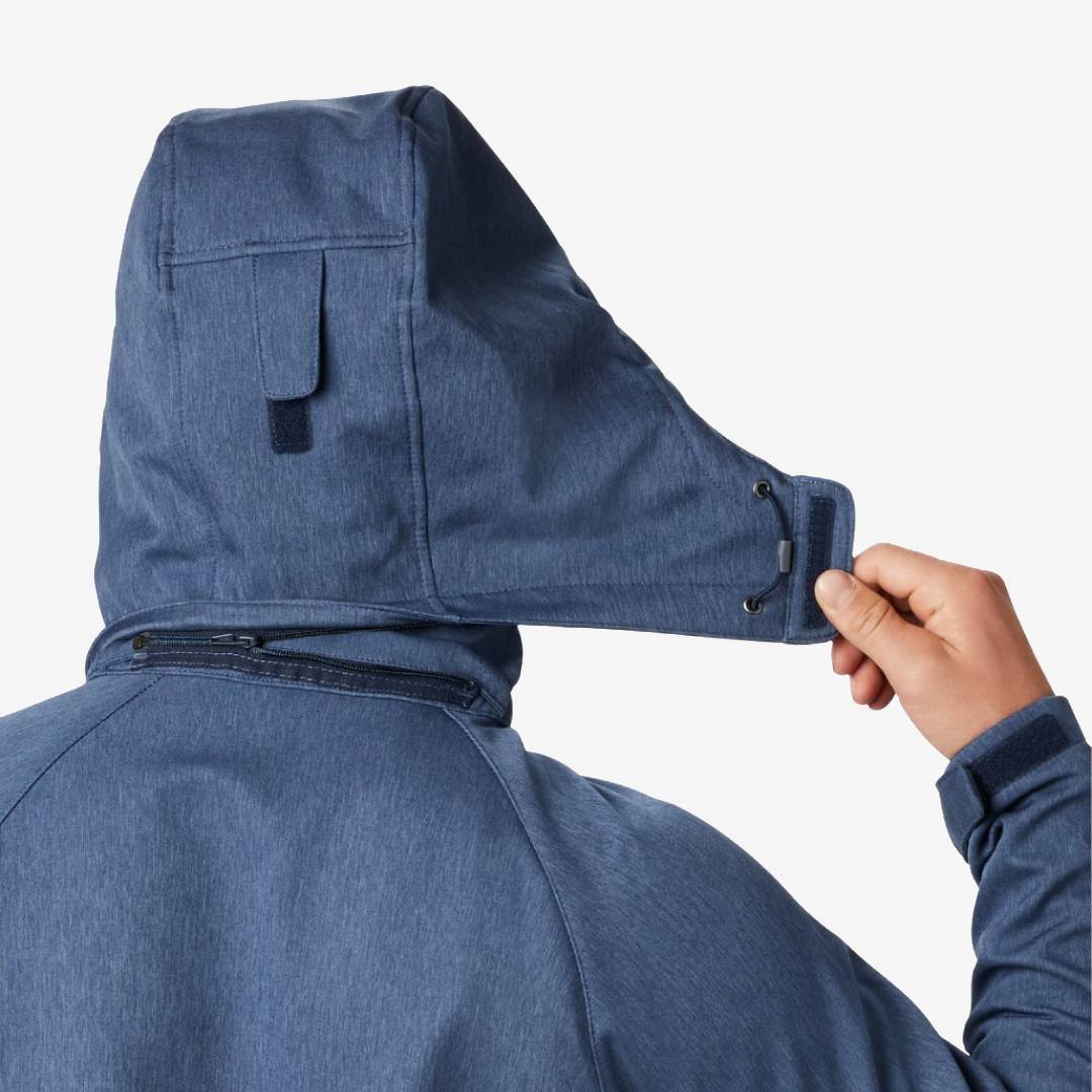 Stay warm when temperatures drop. This welded softshell jacket repels rain and stains and comes with a removable hood for maximum protection.