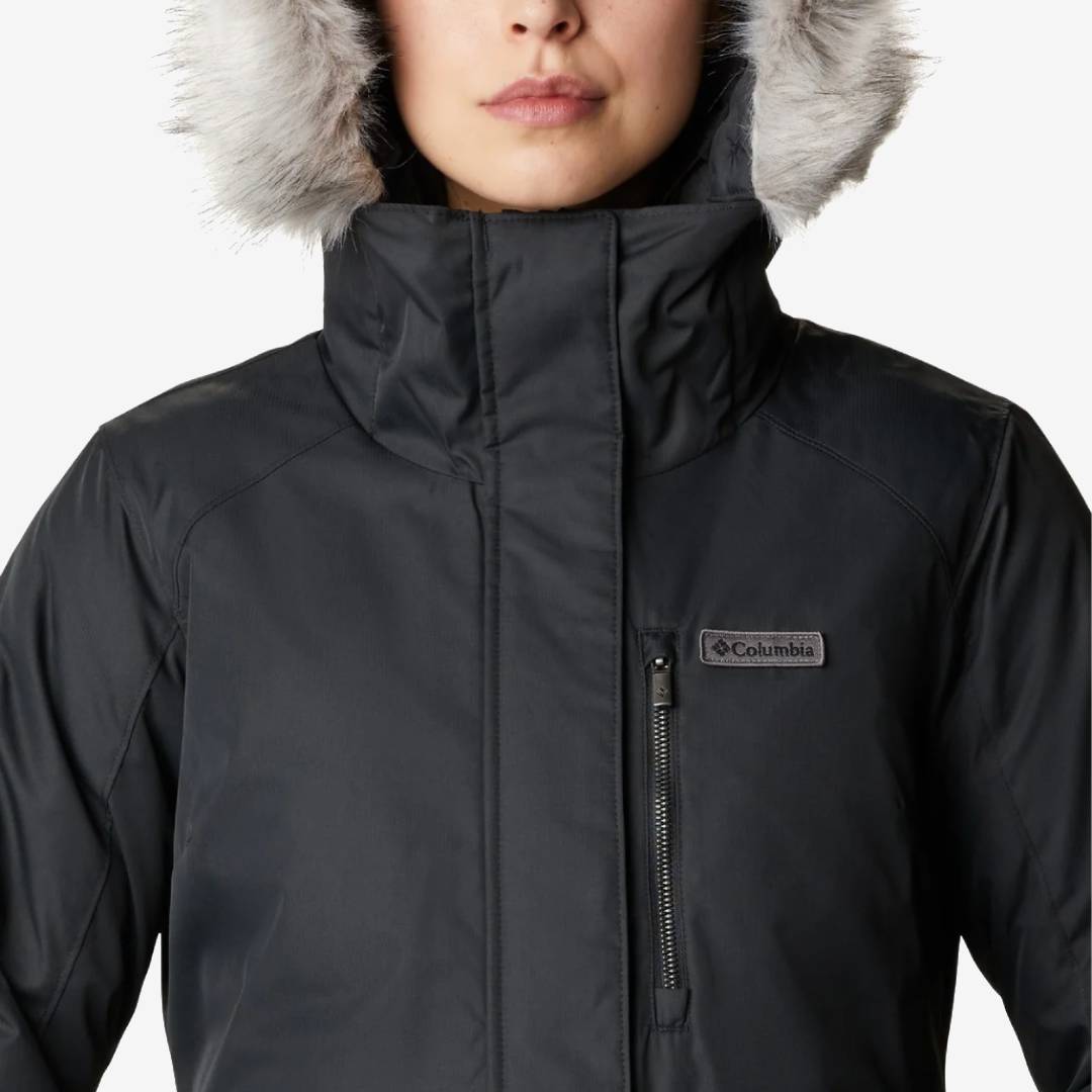 The sherpa fleece-lined hood offers added comfort, while the two-way zipper can be opened from the bottom for greater freedom of movement.