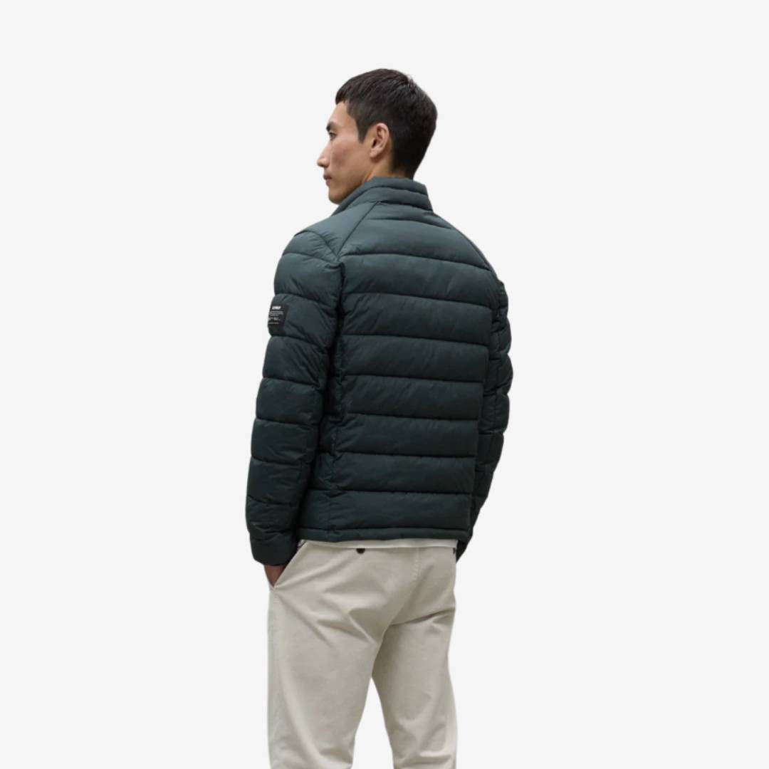 The Beret Jacket is a monomaterial made from 100% recycled polyester, derived from recycled plastic bottles (PET), which we then transform into fibers to offer top-quality, low-impact garments. A water-repellent jacket that's both comfortable and sustainable.