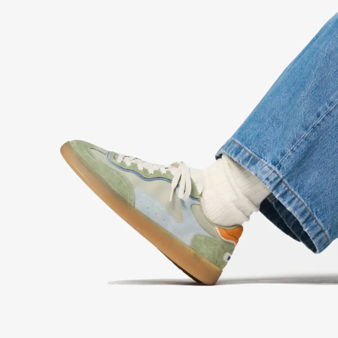 A classic sneaker with a touch of nostalgia. Its design carefully combines different materials, shapes, and tones to offer a perfect balance between aesthetics and functionality. Crafted from nylon and premium suede, it features a caramel-colored rubber sole that adds vintage character. The cushioned heel, flexible tongue, and Memory Foam insole ensure a comfortable, lightweight, and adaptable stride all day long. The logo is subtly integrated into the heel.