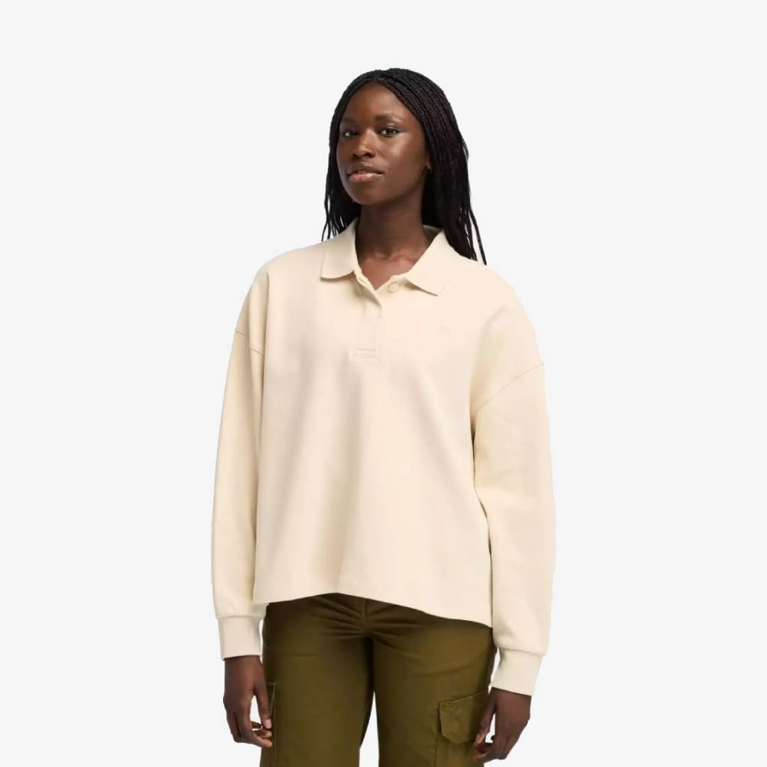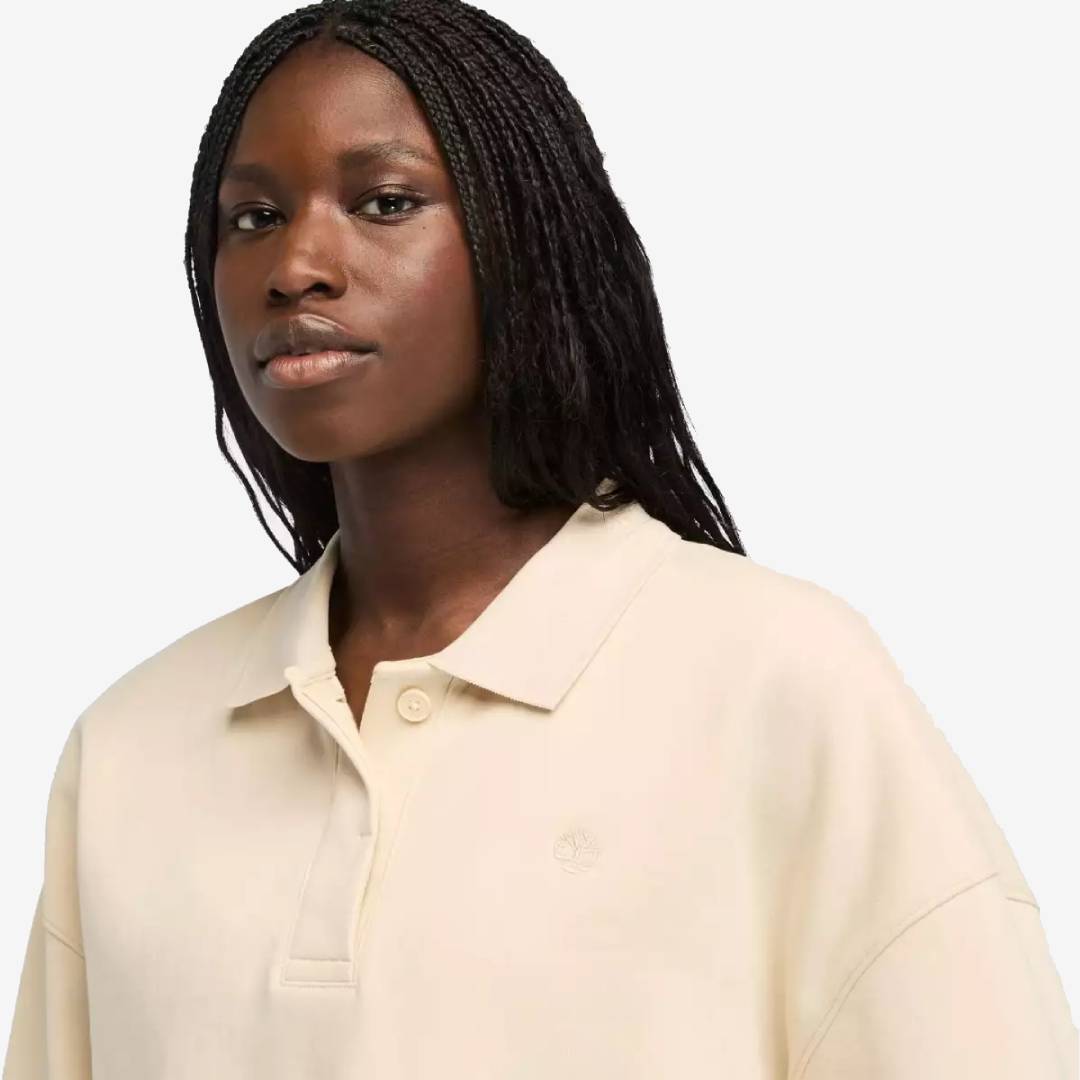 Show off your style in your daily activities with this women's polo-neck sweatshirt. This elegant garment has been crafted from 100% cotton jersey for unbeatable comfort on all your adventures. This 100% organic cotton fabric is also combined with a design decorated with a small embroidery of the brand's tree logo. The style is completed with an elegant oversized fit and a polo-neck, making it the perfect choice for attending any social event or for showing off your style on those days outdoors.