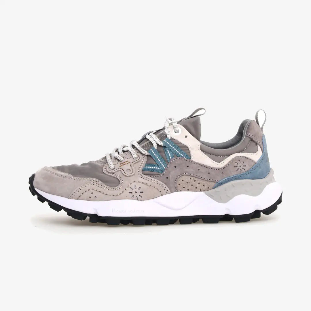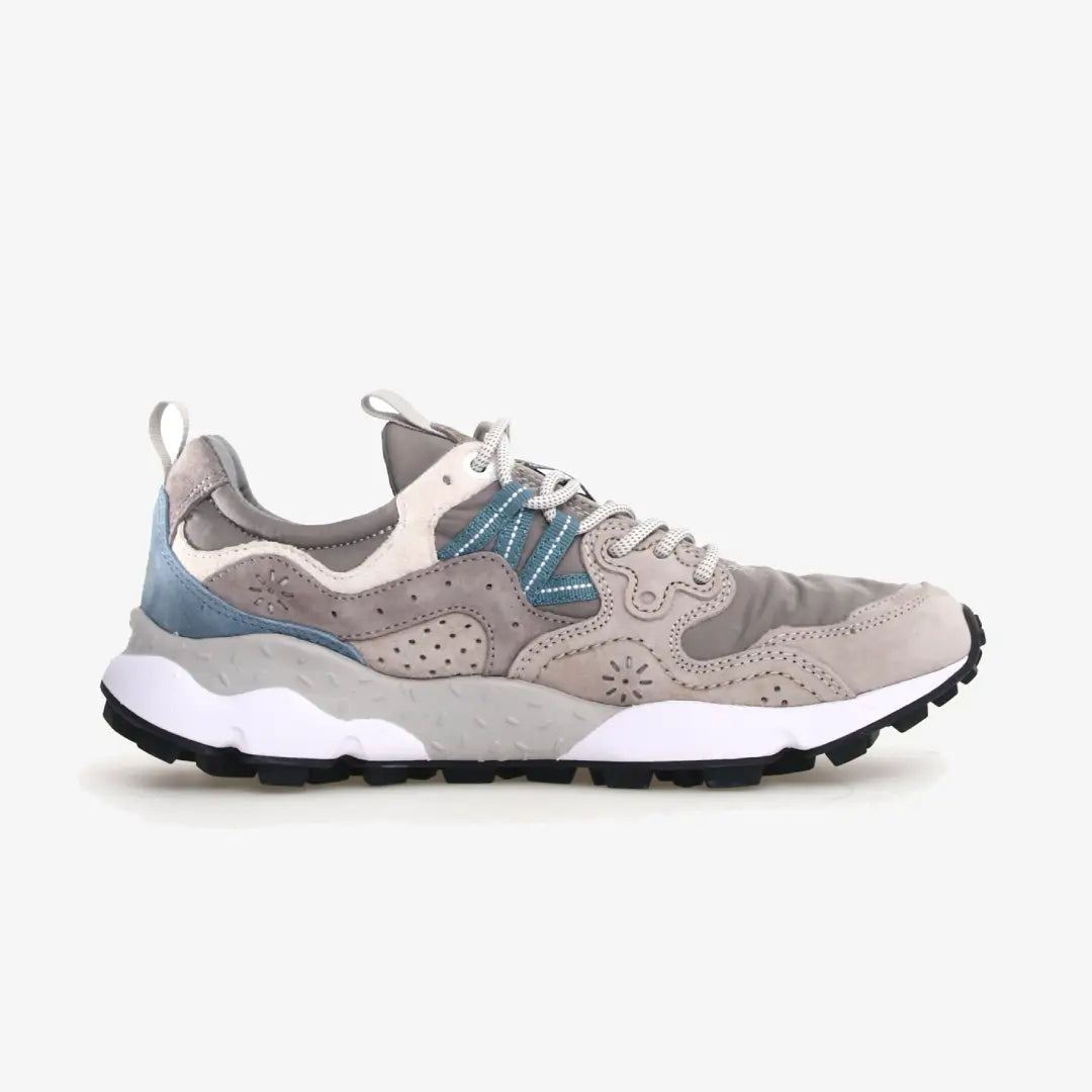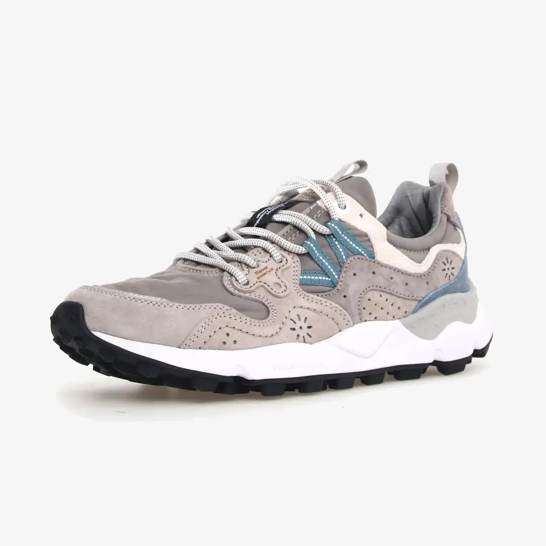 Avec une forme sportive, la sneaker Yamano 3 est également le choix le plus cool pour les looks métropolitains : la tige en tissu technique avec empiècements en daim présente des perforations emblématiques et un système de laçage avec œillets renforcés et lacets de trekking, inspiré des modèles hautes performances. Le confort et le bien-être sont assurés par la semelle intérieure anatomique et antibactérienne en liège et la semelle en caoutchouc ultra-légère aux formes latérales et au motif dentelé.
