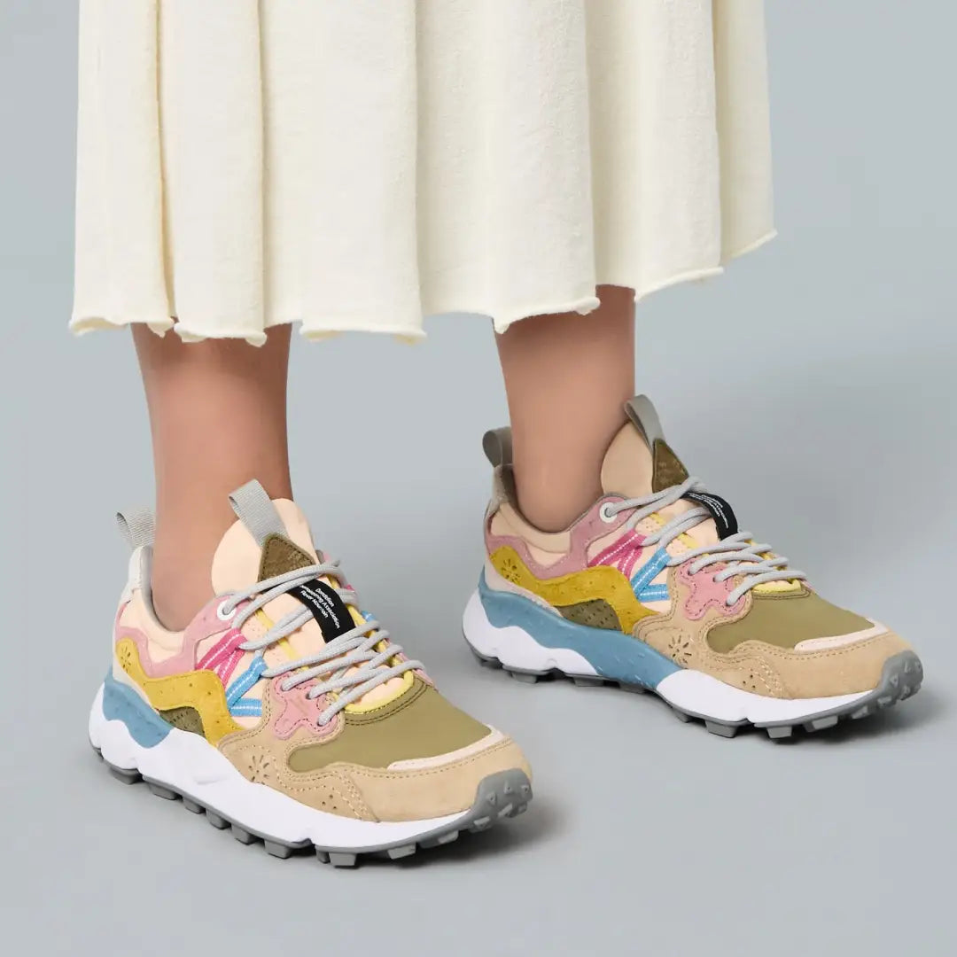 Avec sa silhouette sportive, la sneaker Yamano 3 est aussi l'option la plus tendance pour un look urbain : sa tige en tissu technique avec empiècements en suède présente des perforations emblématiques et un système de laçage avec œillets renforcés et lacets de randonnée, inspiré des modèles haute performance. Confort et bien-être sont assurés par la semelle intérieure anatomique en liège antibactérien et la semelle en caoutchouc ultralégère avec stries latérales et motif rainuré.