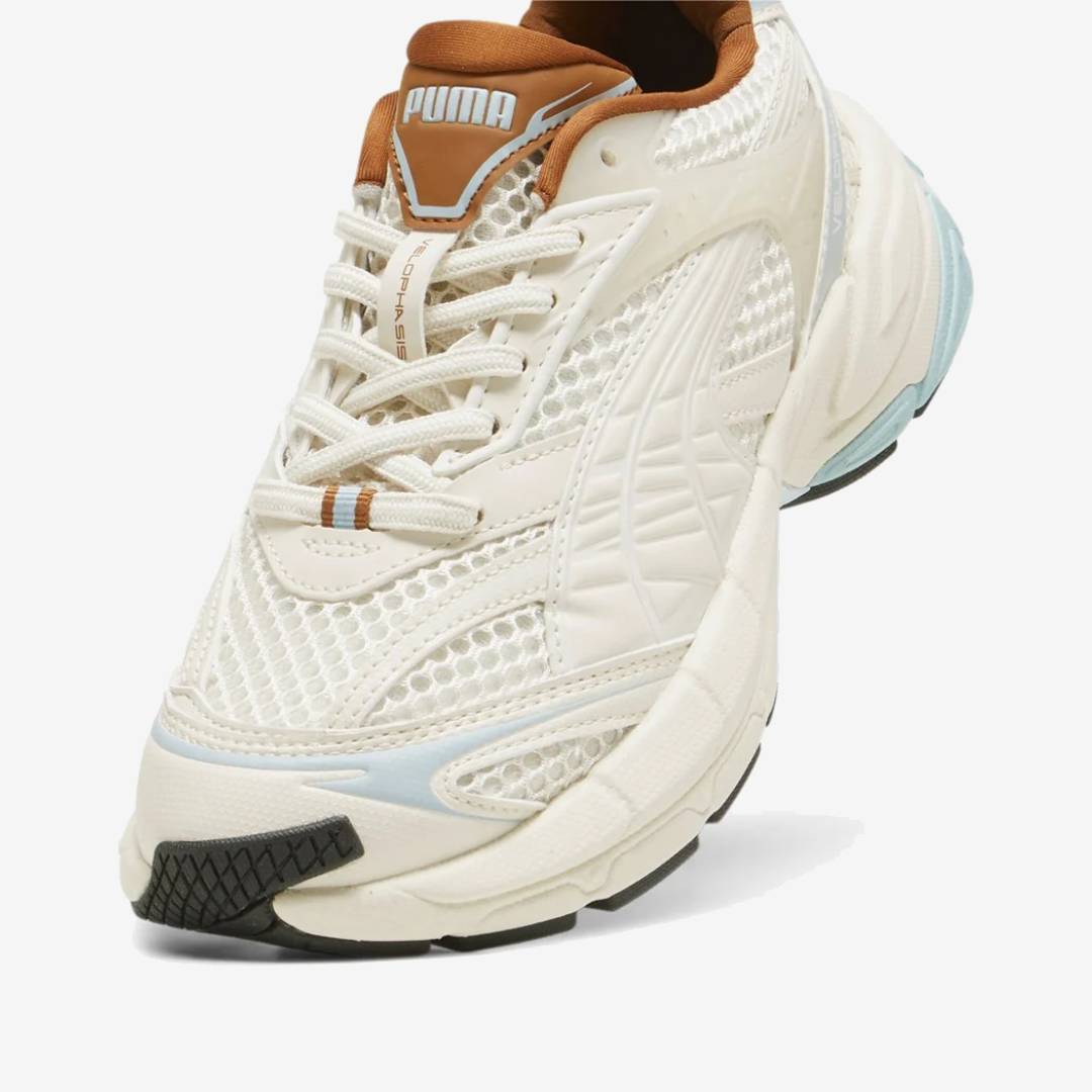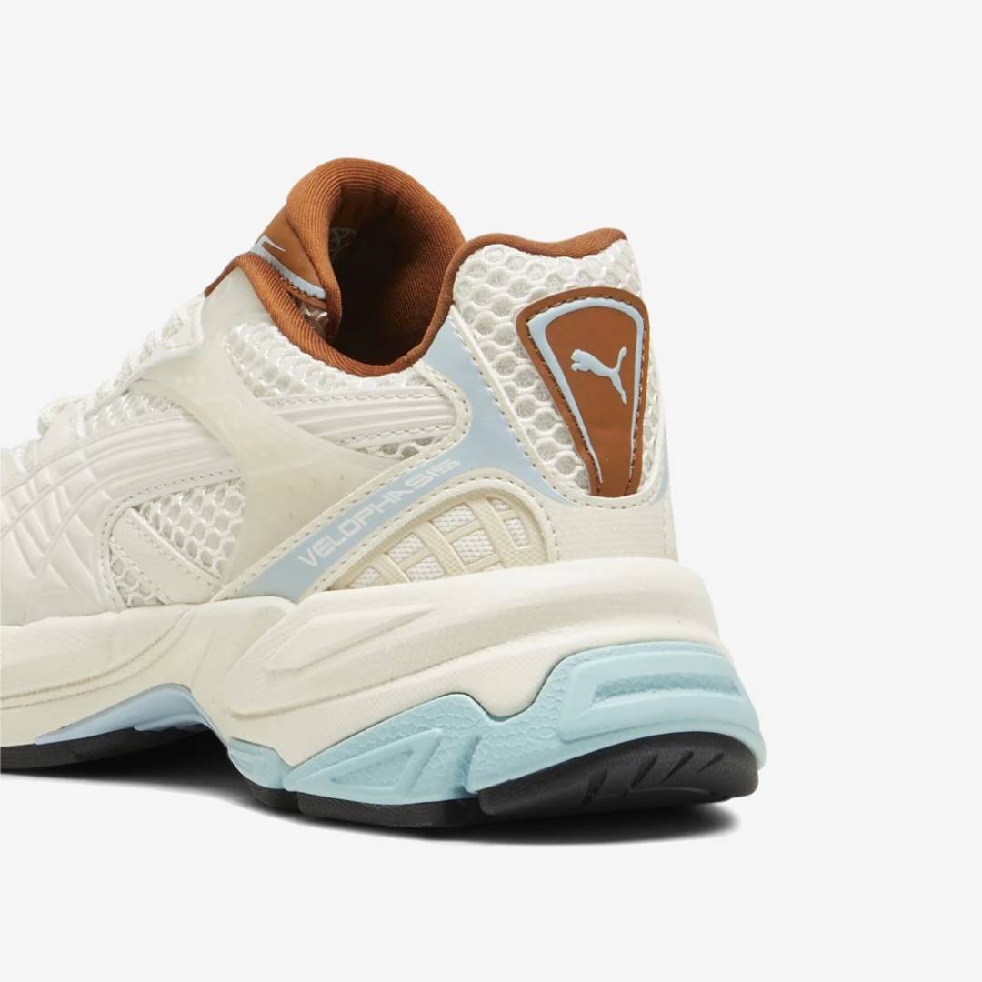 Le Velophasis a été créé avec un mélange de références issues d’une esthétique de design similaire afin de créer quelque chose de nouveau et d’authentique. Sa silhouette est un hybride des années 2000, vaguement inspiré de la gamme de course à pied haute performance de PUMA. Ce modèle extraordinaire combine une maille synthétique respirante avec des éléments décoratifs brillants sur la tige. Ce modèle présente une tige en mesh respirant avec des superpositions dégradées et du TPU moulé translucide.