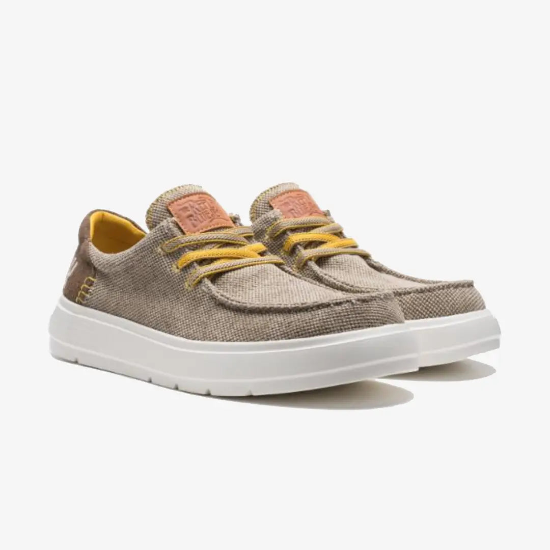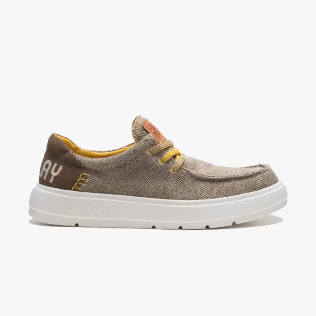 Les mocassins Alcyon 2 Tex présentent une tige en coton résistant avec des lacets contrastants, un talon effet daim et une doublure assortie aux lacets. Le logo Replay brodé sur le talon et l'étiquette personnalisée sur la languette affirment l'ADN de la marque. La semelle ultralégère en EVA arbore un logo imprimé sur le côté.