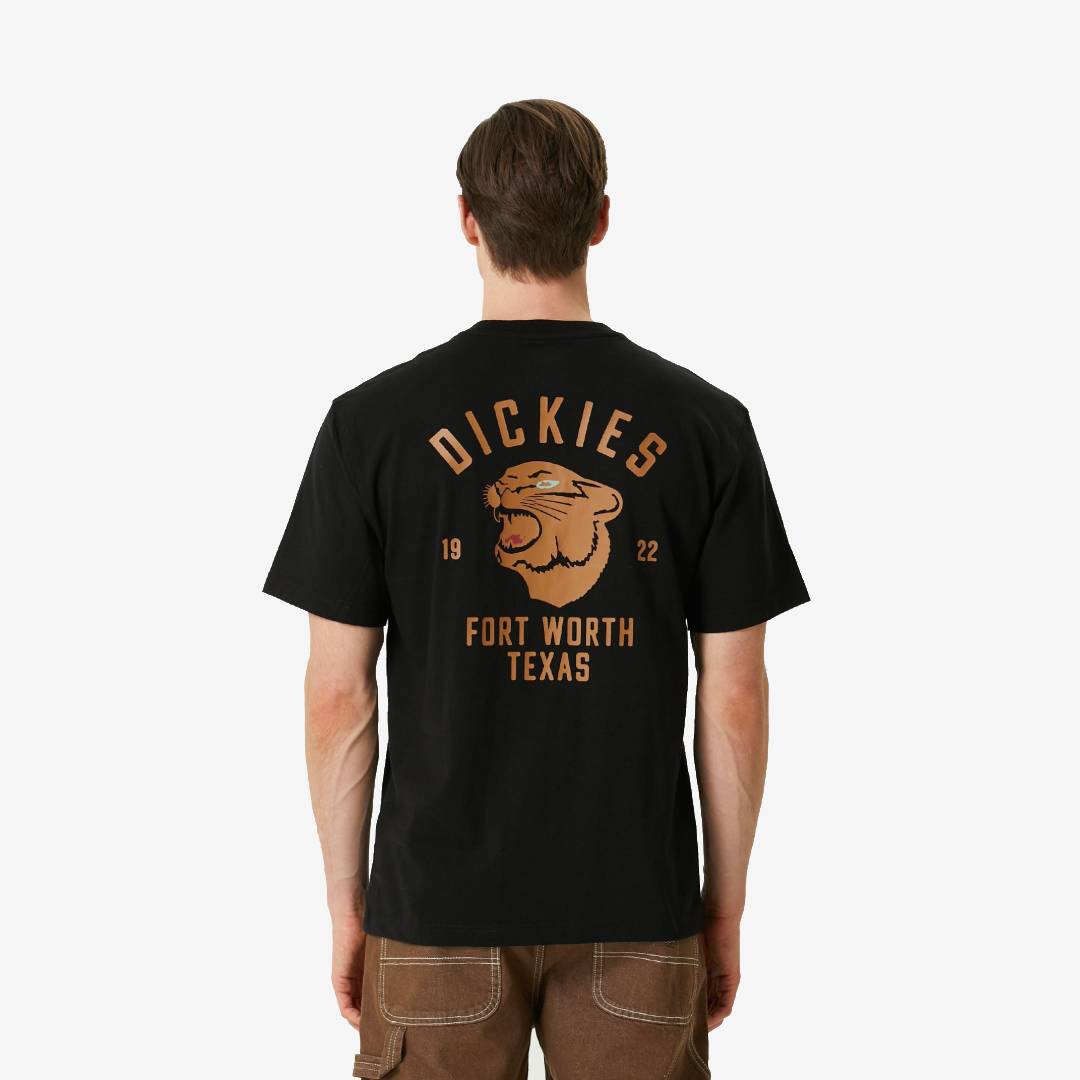 Tira fuori il tuo lato selvaggio con questa maglietta a maniche corte. Caratterizzata da una vivace stampa di una pantera sul retro, questa maglietta ampia è realizzata in morbido jersey di cotone, estremamente confortevole. Indossalo con una camicia di cotone e i tuoi jeans preferiti.