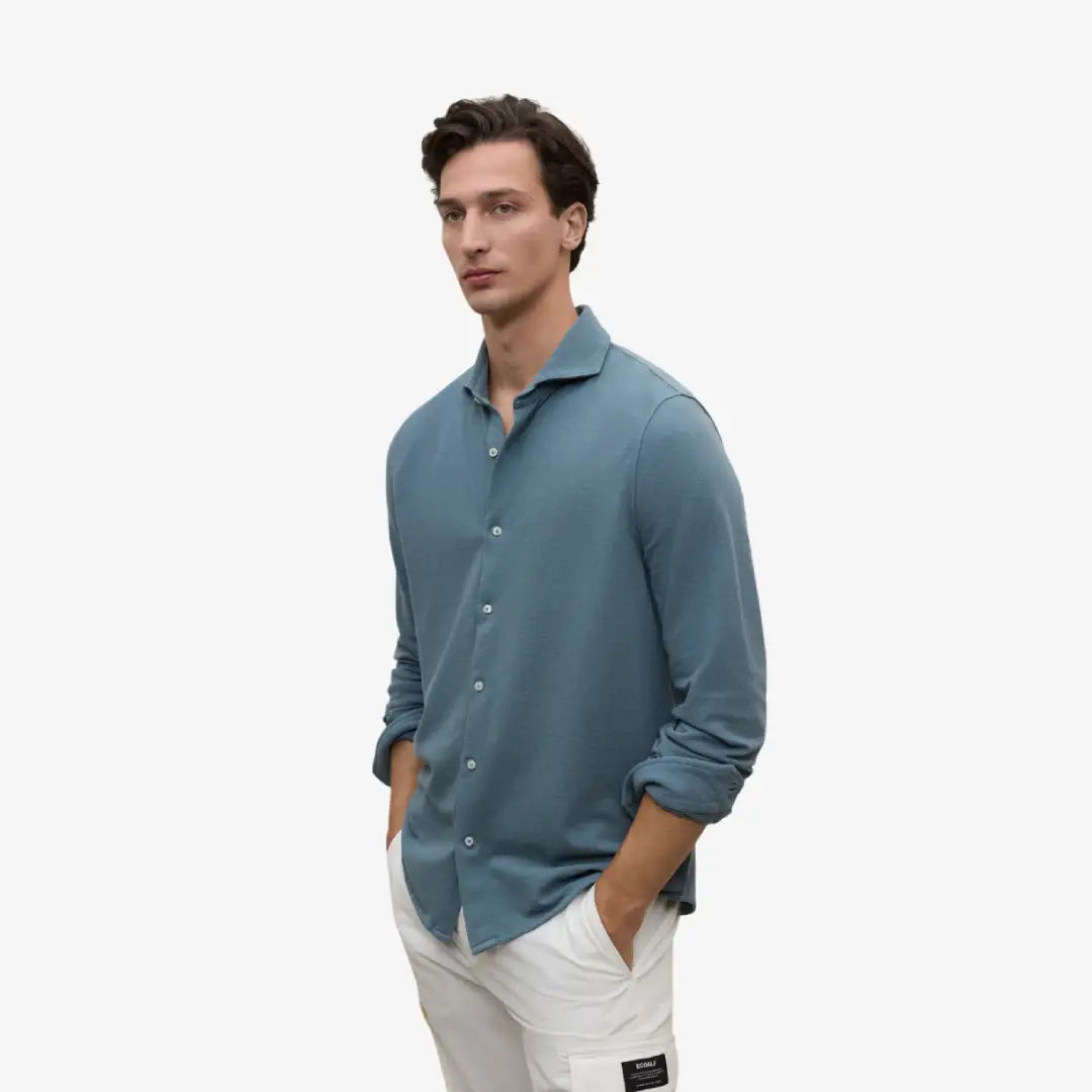 La camicia Gotham è realizzata al 100% in cotone riciclato. Il cotone riciclato consente di risparmiare acqua e CO2, dà nuova vita agli scarti tessili e riduce l'uso di cotone vergine. Non richiede pesticidi né nuovi terreni, proteggendo così il suolo, l'acqua e la biodiversità.