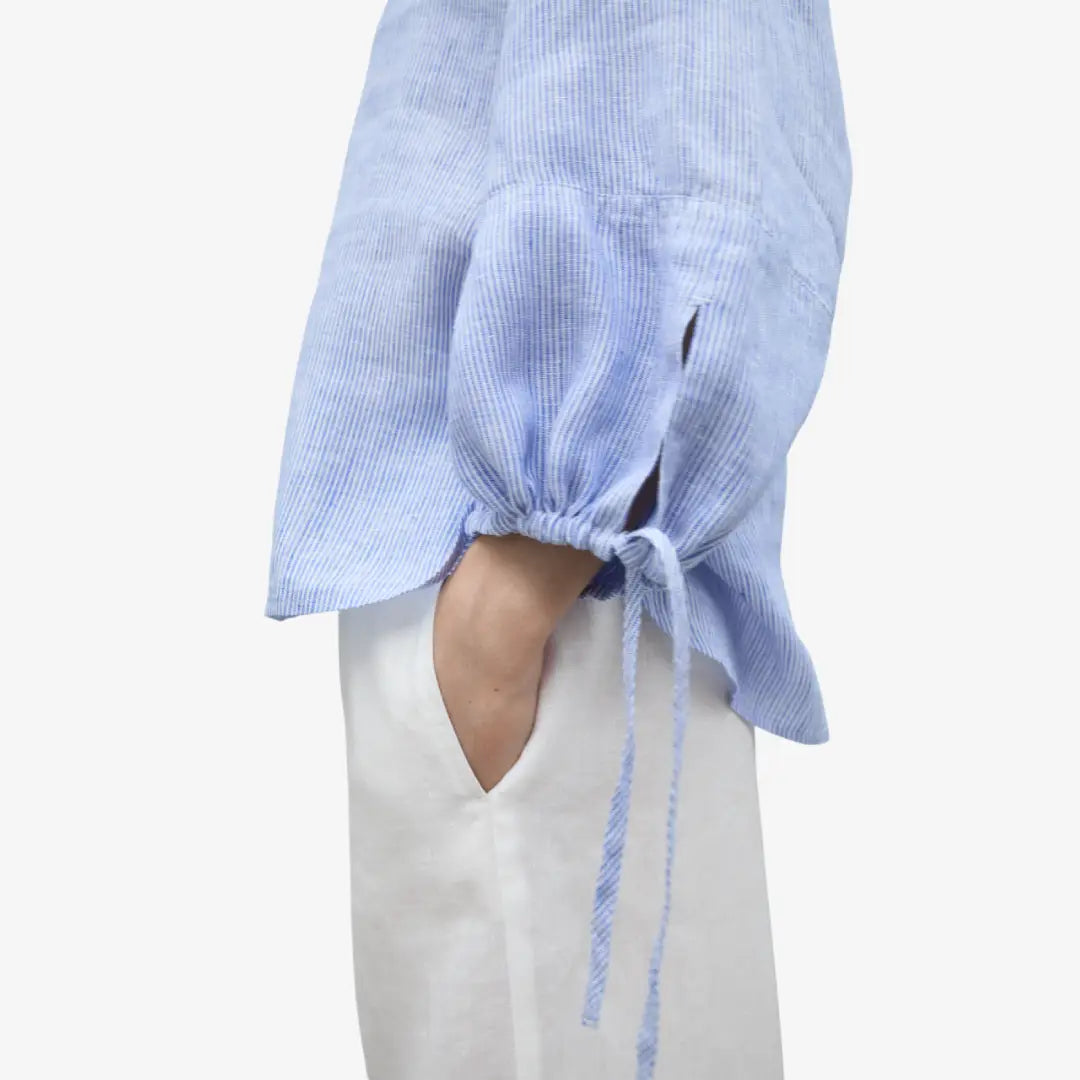 La camicia a righe Jena, realizzata in lino all'80%. L'impatto ambientale minimo del lino lo rende una scelta straordinaria. Il lino richiede molta meno acqua e pesticidi rispetto ad altre colture ed è anche biodegradabile. I polsini regolabili con coulisse in tessuto e la piega al centro della schiena gli conferiscono un tocco distintivo, ideale per ogni occasione.