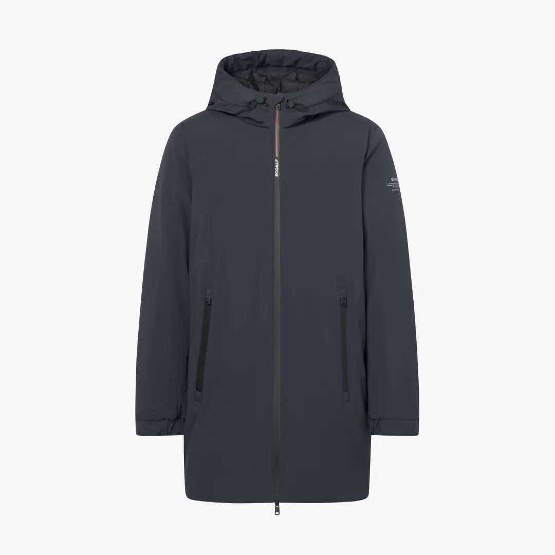 Il cappotto Pasu è realizzato in poliestere riciclato al 100%, con fodera e imbottitura in poliestere riciclato al 100%. Il poliestere riciclato riduce l'uso di risorse fossili, le emissioni di CO2 e il consumo di acqua ed energia, riutilizzando rifiuti di plastica come le bottiglie in PET, pur mantenendo le proprietà del poliestere vergine.