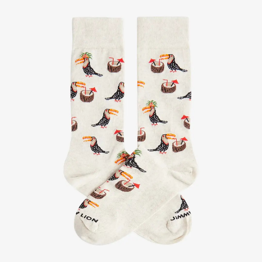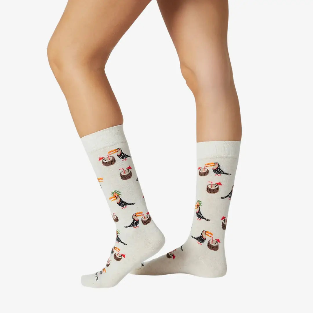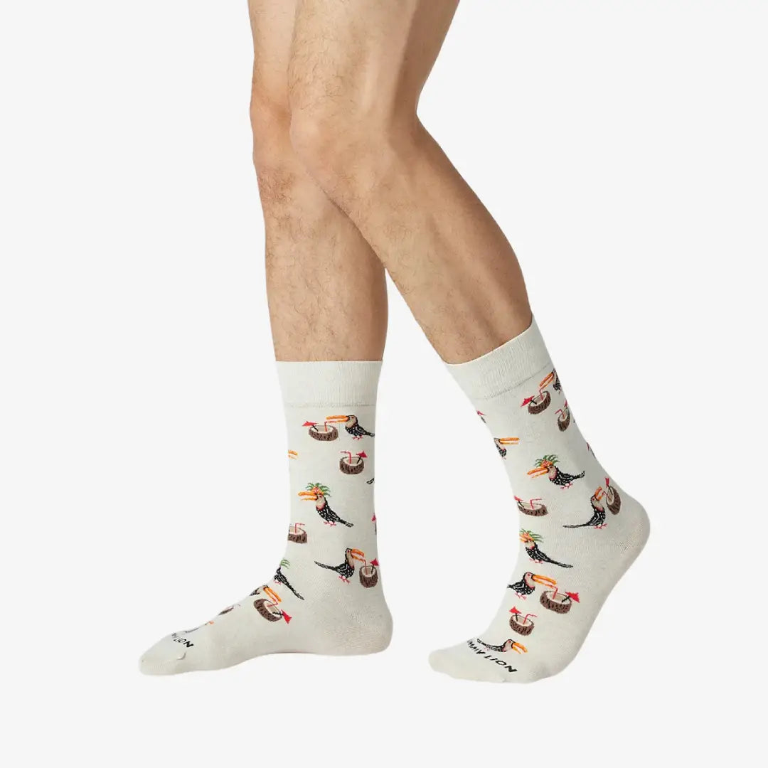 La vita è facile con i calzini Tropical Toucan. Questi calzini casual con piccole stampe sono morbidi come la seta e super originali! In beige, stanno bene con tutto. Ma attenzione, ti verrà voglia di scappare su un'isola!
