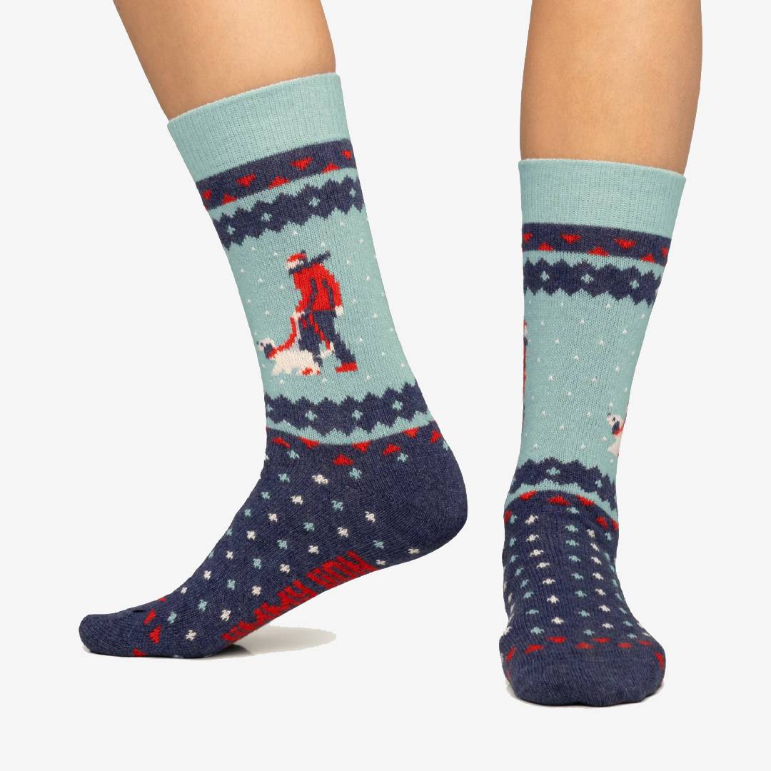 Vi sorprendiamo con l'accessorio indispensabile per le fredde e frenetiche giornate invernali. Porti fuori il cane? Andare a fare shopping? Esci con gli amici? Prendi il tuo cappello, la tua sciarpa e questi freschi calzini in lana e cashmere e immergiti nella vita quotidiana dei newyorkesi ritratti in questo modello. I colori a contrasto e i dettagli sul fondo del calzino sotto forma di piccoli pois e triangoli aggiungeranno un tocco di colore ai tuoi look. Con questi calzini comodi e caldi non avrai più paura dell'arrivo dell'inverno!