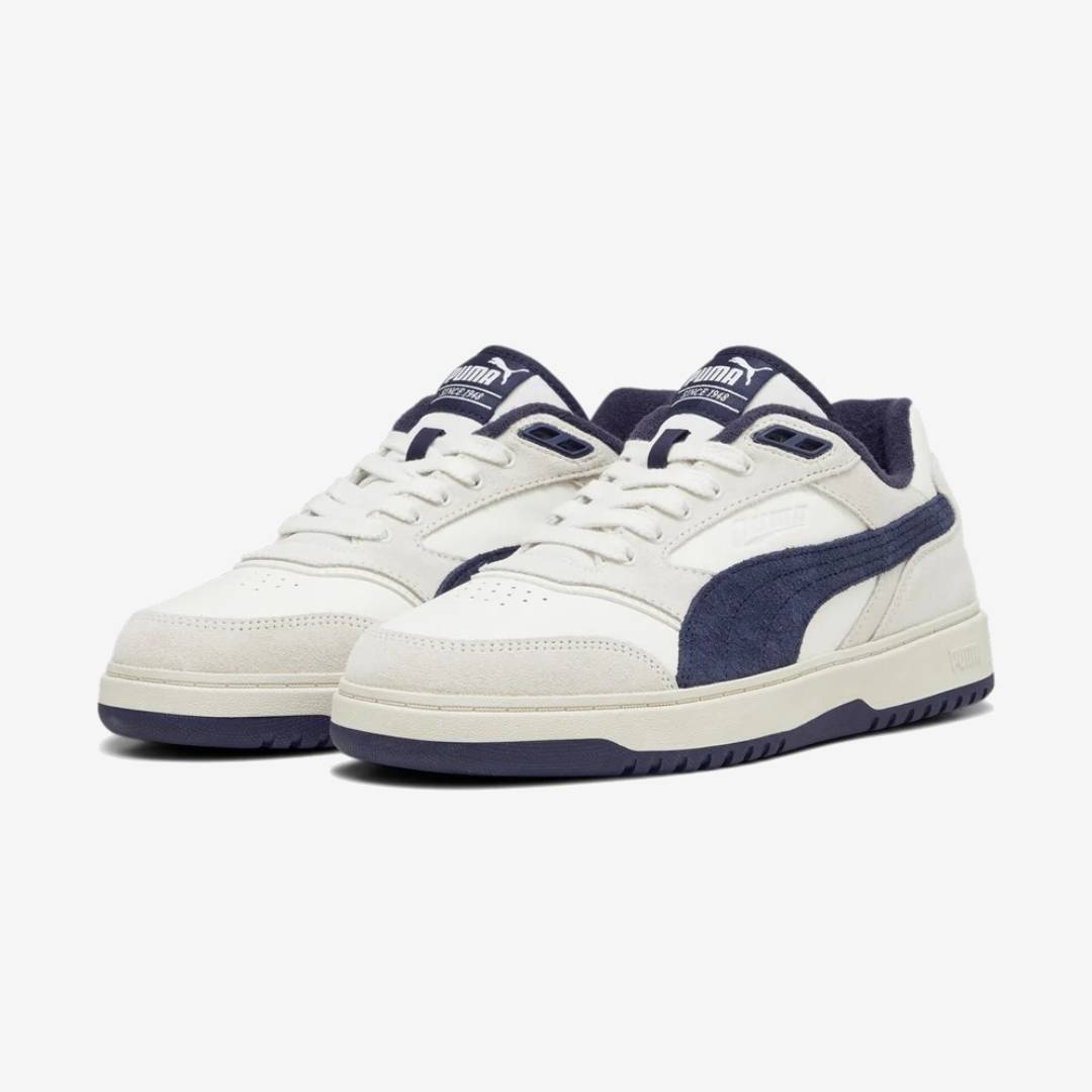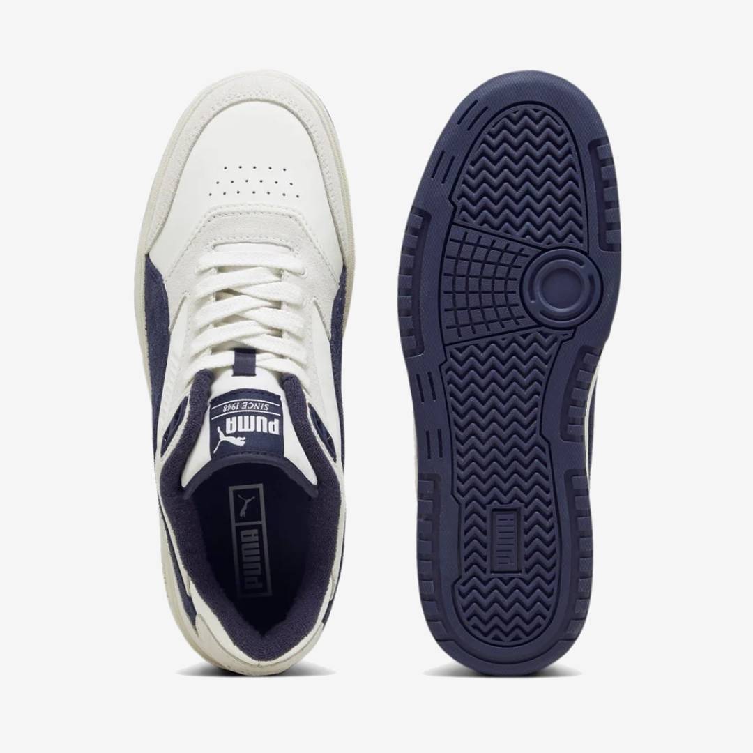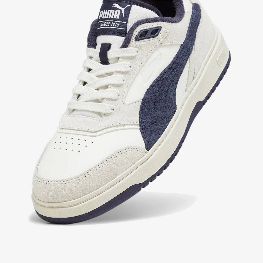 IL Puma Doublecourt si ispira ai nostri classici modelli da tennis, ma presenta un design moderno e dettagli raffinati, tra cui una tomaia in pelle con rivestimenti in pelle scamosciata.
