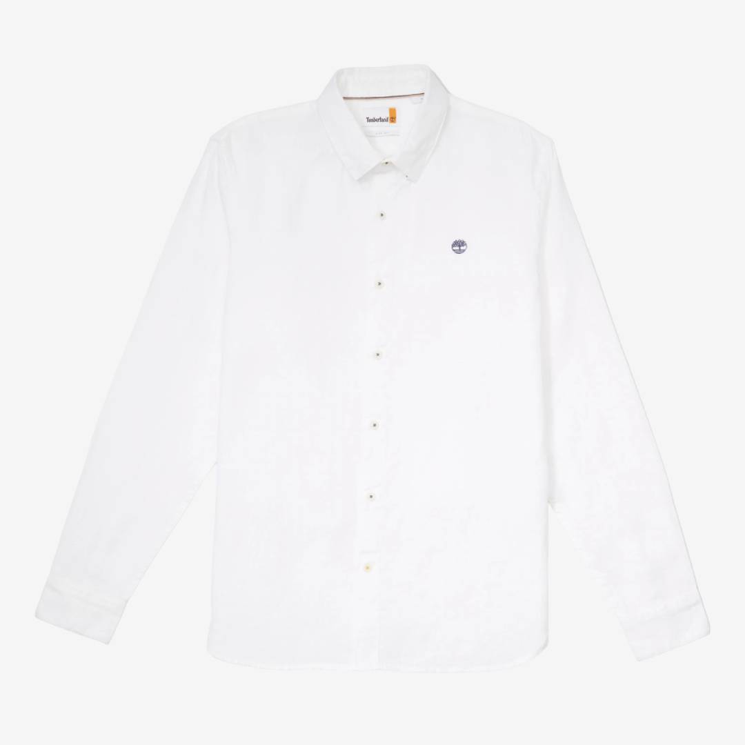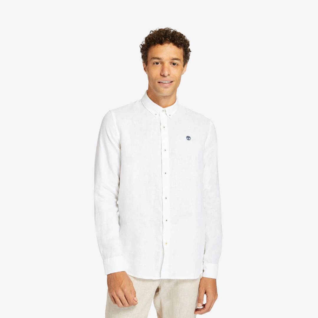 Questa camicia da uomo a maniche lunghe, realizzata in 100% lino, presenta una vestibilità aderente, polsini arrotondati, profili a contrasto e il logo del marchio ricamato sul petto.