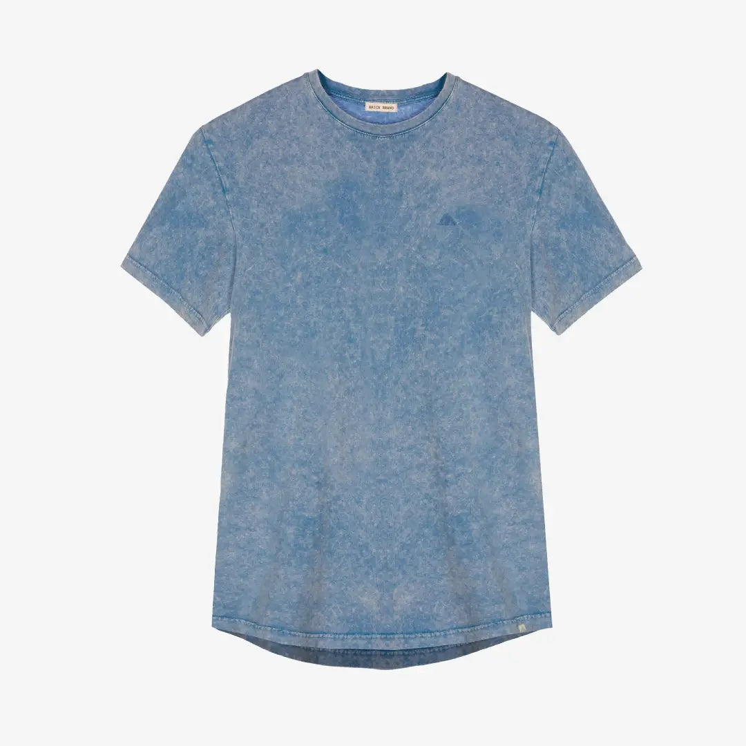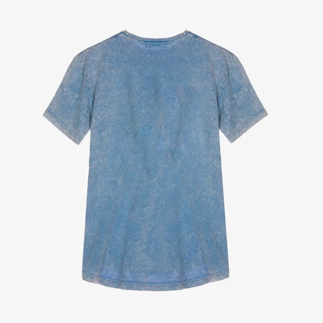 Camiseta 100% algodón color azul cielo con efecto desgastado, bordado del logo en el pecho.