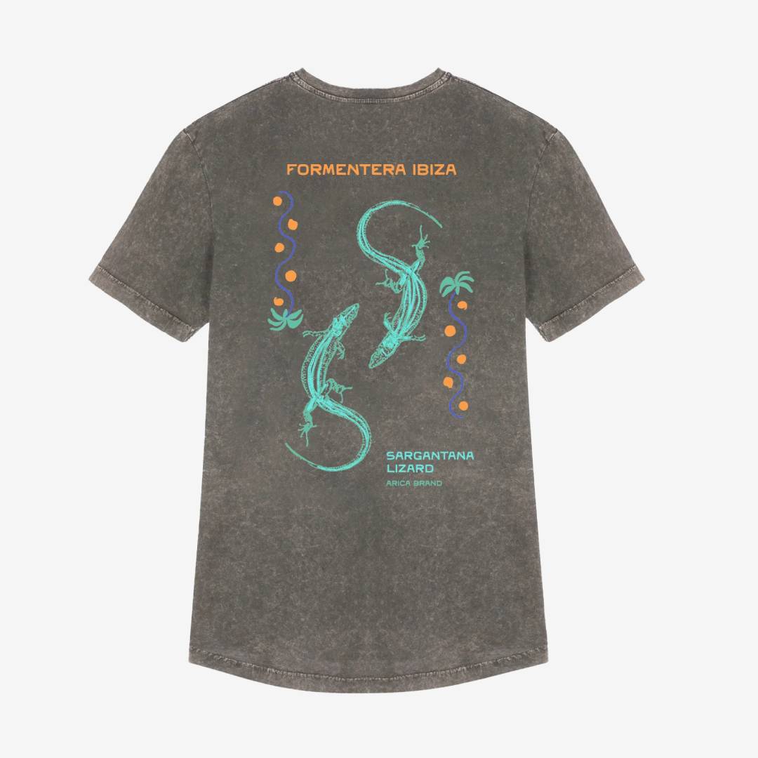 La isla de moda y un paraíso natural. Hemos querido salir del turismo y centrarnos en la fauna y flora de las Islas Pitiusas mostrando una de las especies protegidas más importantes de la zona, la lagartija Sargantana ibicenca. Sus colores van del azul al amarillo y sin duda harán de este diseño uno de los grandes Hits de este verano!