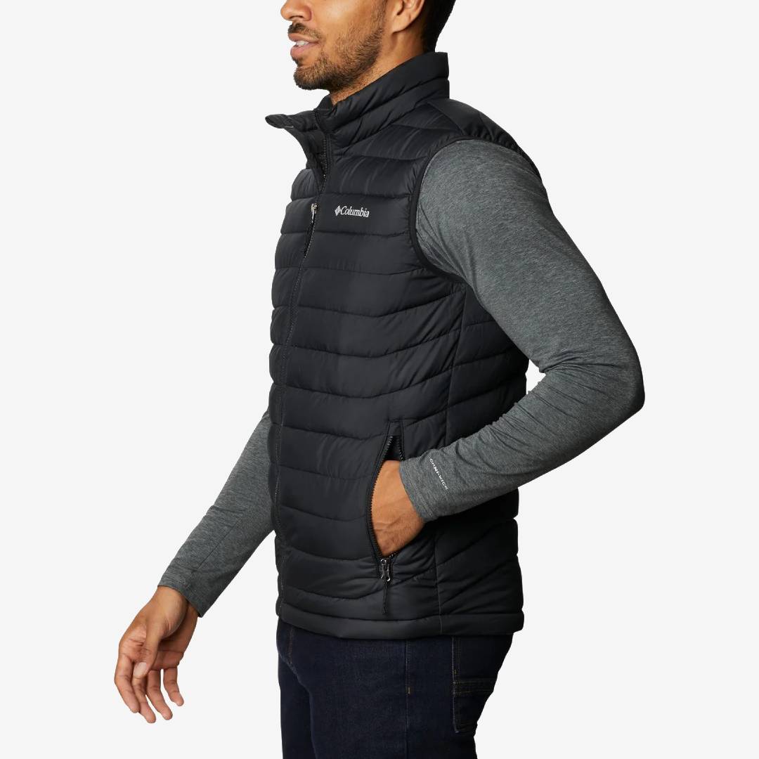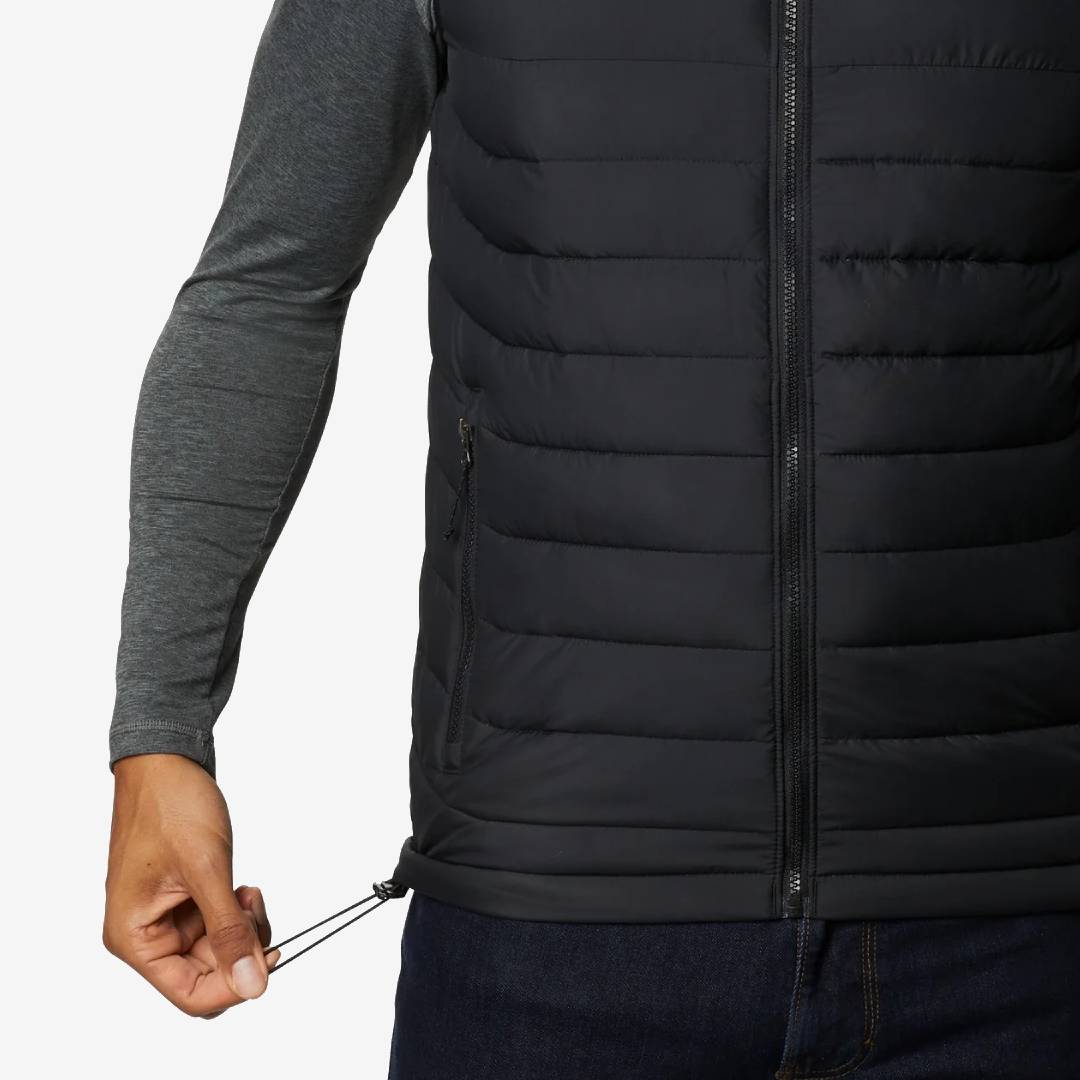 Este chaleco puede soportar tranquilamente nevadas y lloviznas ligeras gracias a su capa externa deperlante al agua.