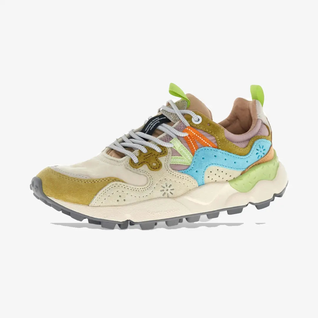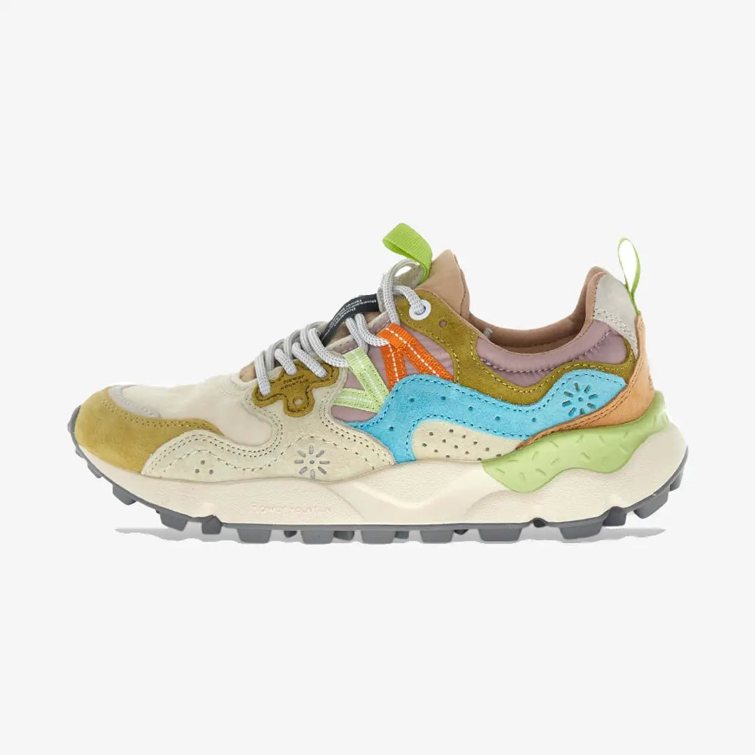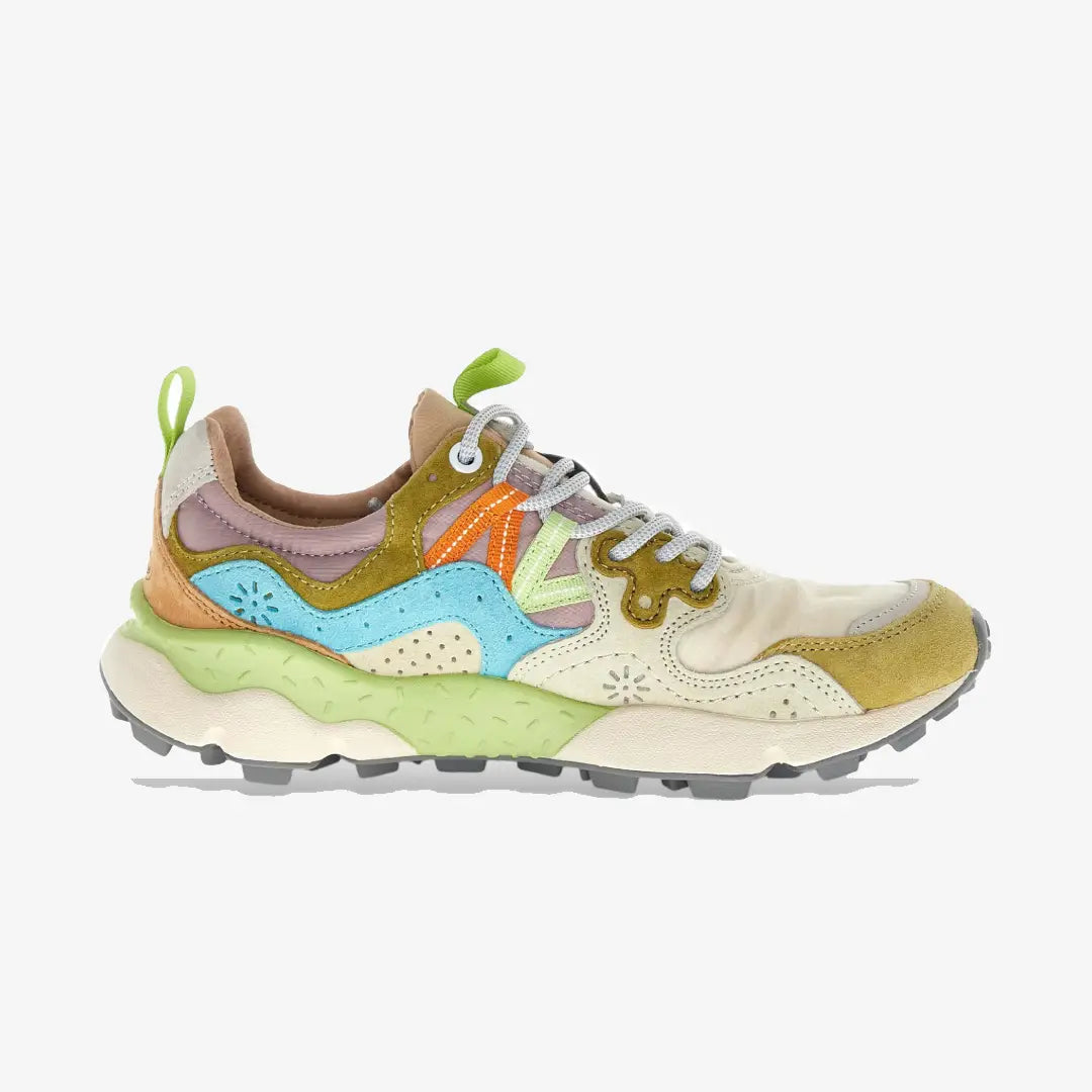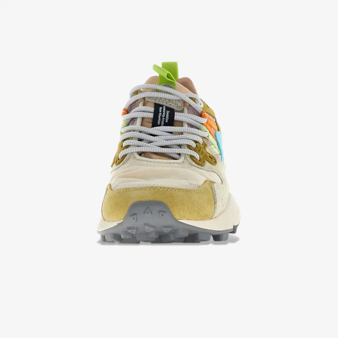 Con una forma deportiva, la zapatilla Yamano 3 es también la opción más cool para los looks metropolitanos: la parte superior de tejido técnico con inserciones de ante presenta perforaciones icónicas y un sistema de cordones con ojales reforzados y cordones de trekking, inspirados en los modelos de alto rendimiento. La comodidad y el bienestar están asegurados por la plantilla de corcho anatómica y antibacteriana, y la suela de goma ultraligera con formas laterales y dibujo dentado.