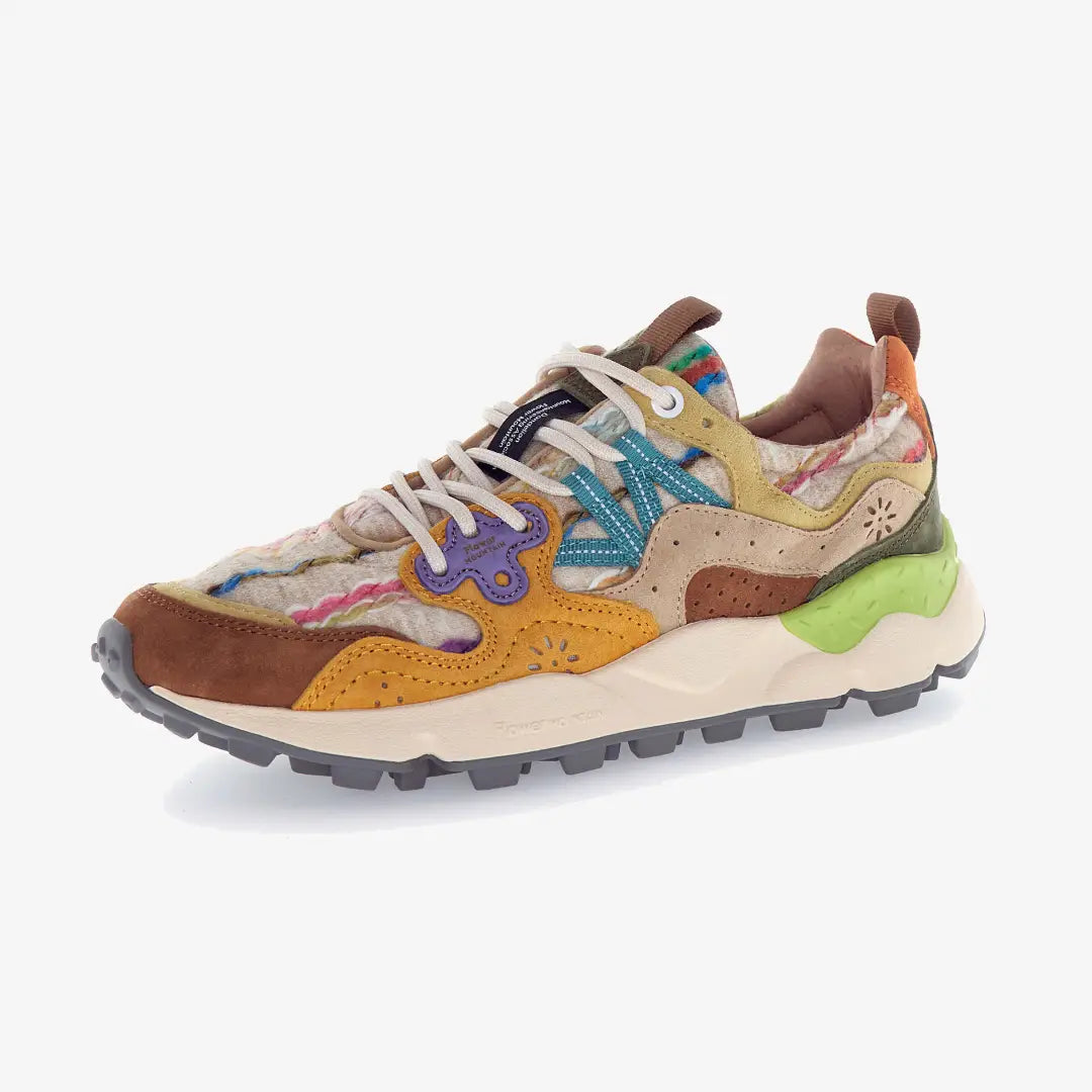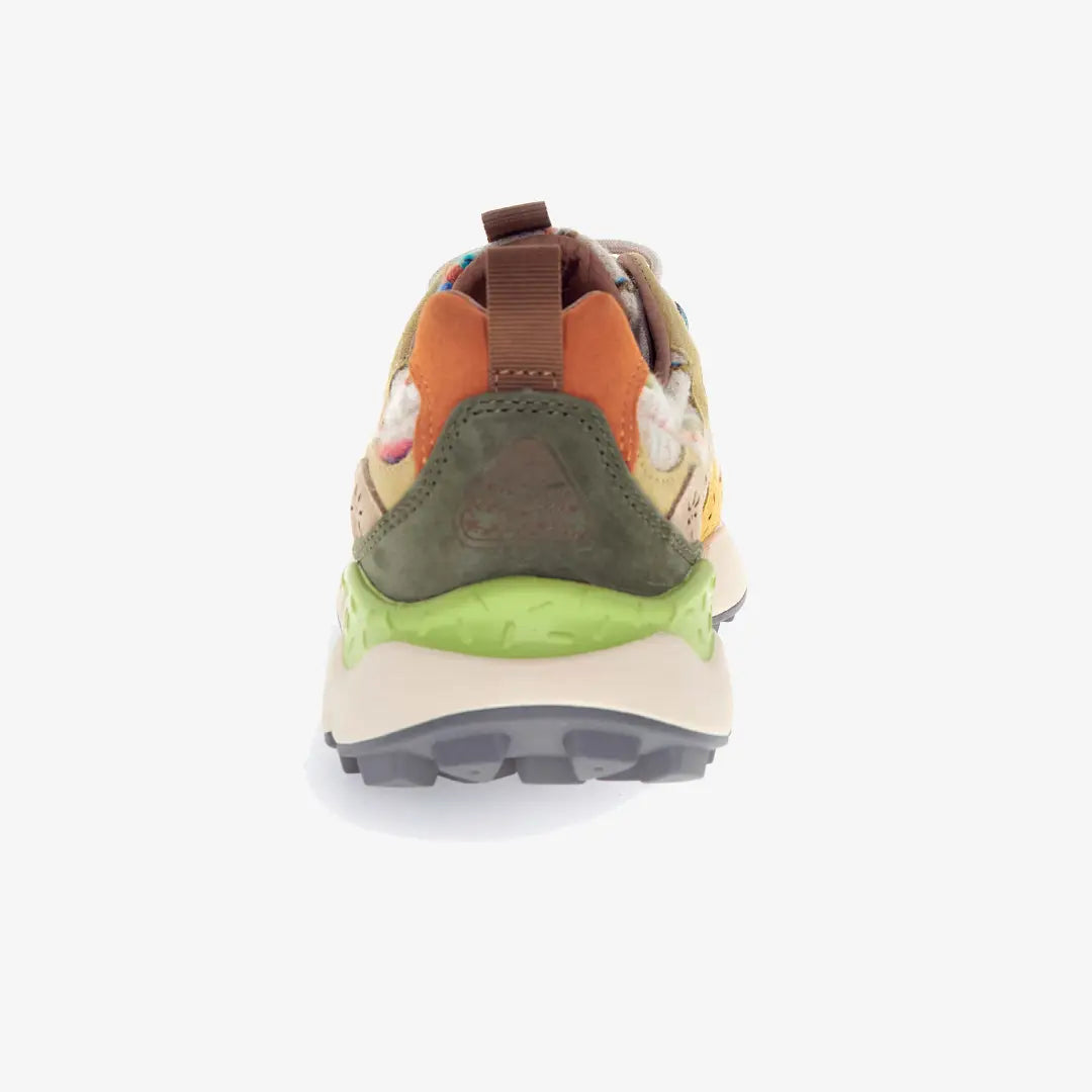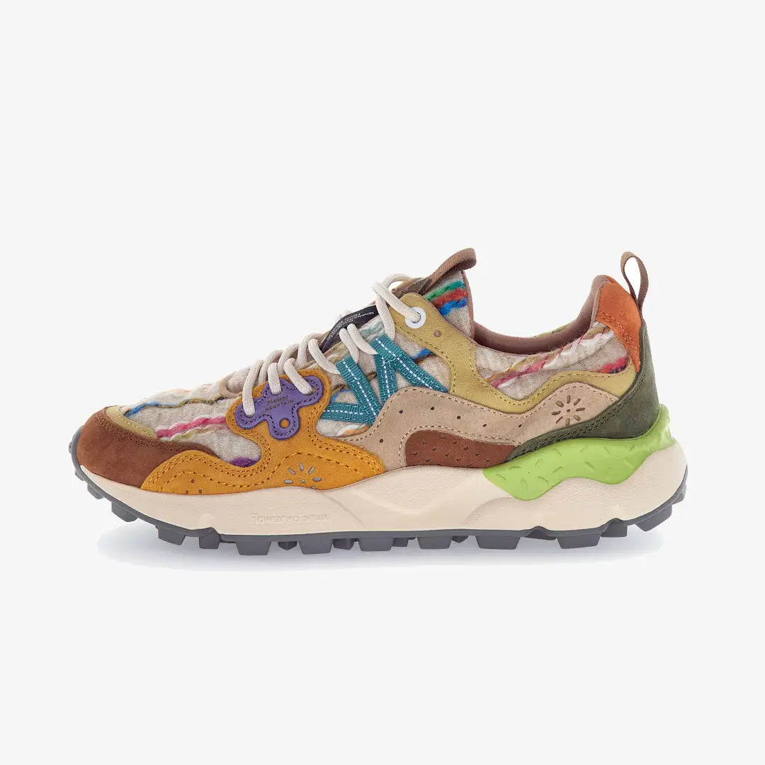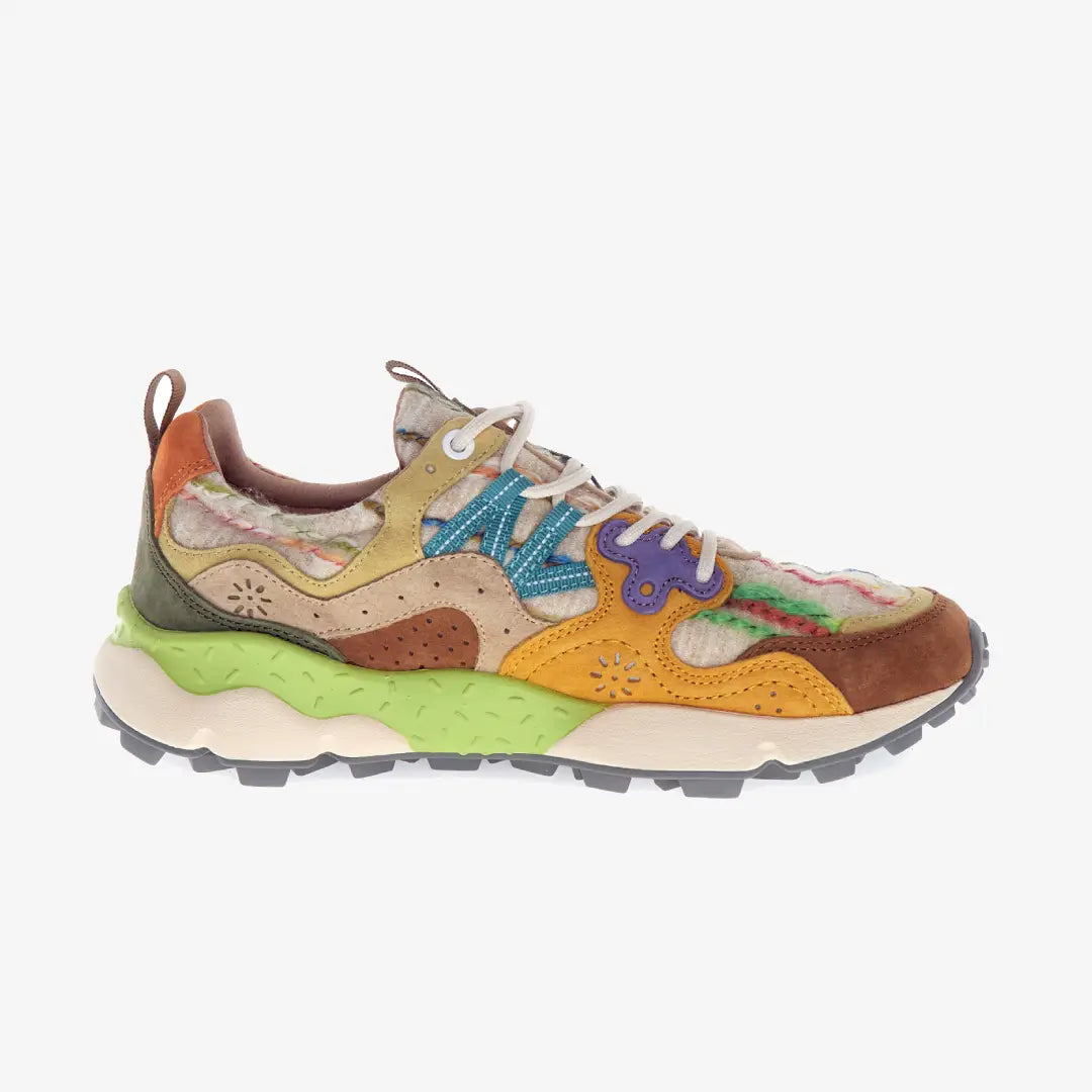 Con una forma deportiva, la zapatilla Yamano 3 es también la opción más cool para los looks metropolitanos: la parte superior de tejido técnico con inserciones de ante presenta perforaciones icónicas y un sistema de cordones con ojales reforzados y cordones de trekking, inspirados en los modelos de alto rendimiento. La comodidad y el bienestar están asegurados por la plantilla de corcho anatómica y antibacteriana, y la suela de goma ultraligera con formas laterales y dibujo dentado.