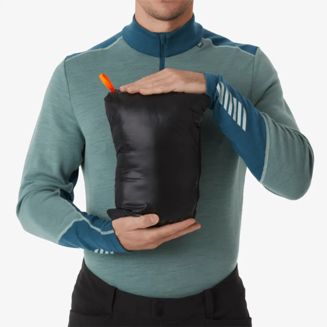 • Aislamiento con plumón hidrofóbico, especialmente tratado para repeler el agua y garantizar una temperatura óptima incluso en condiciones húmedas