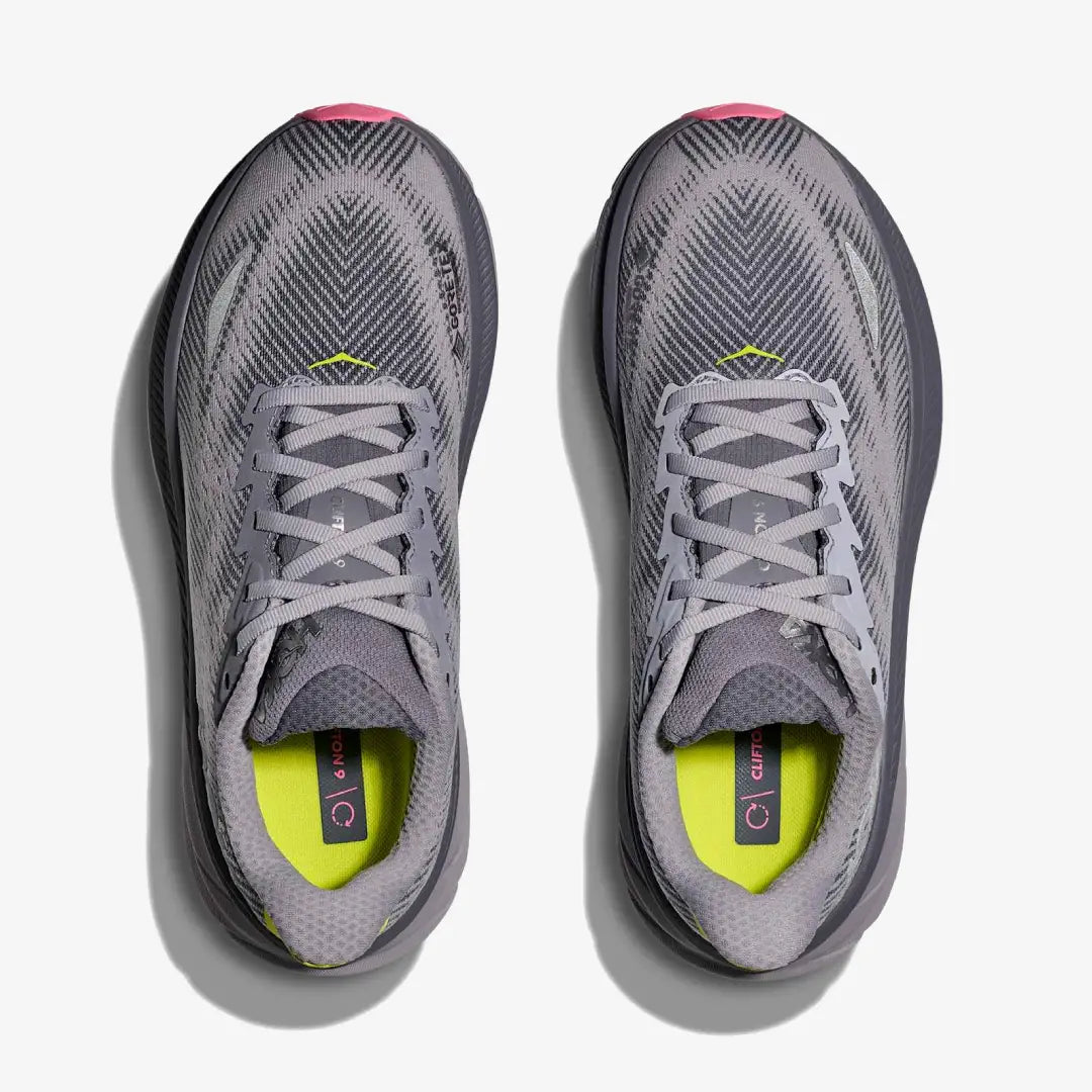 Amortiguación en la pisada, llueva o haga sol. Nuestras Clifton clásicas se actualizan con GORE-TEX Invisible Fit y tacos de tracción ideales para animar a los corredores a tirar millas, incluso con mal tiempo. Las primeras zapatillas de carretera impermeables de HOKA presentan un diseño que resiste las salpicaduras, reflectividad a 360 grados y una construcción de malla cerrada que mejora la protección. Diseñadas para brillar aunque el sol no lo haga, las Clifton 9 GORE-TEX demuestran que el clima nunca será un obstáculo.