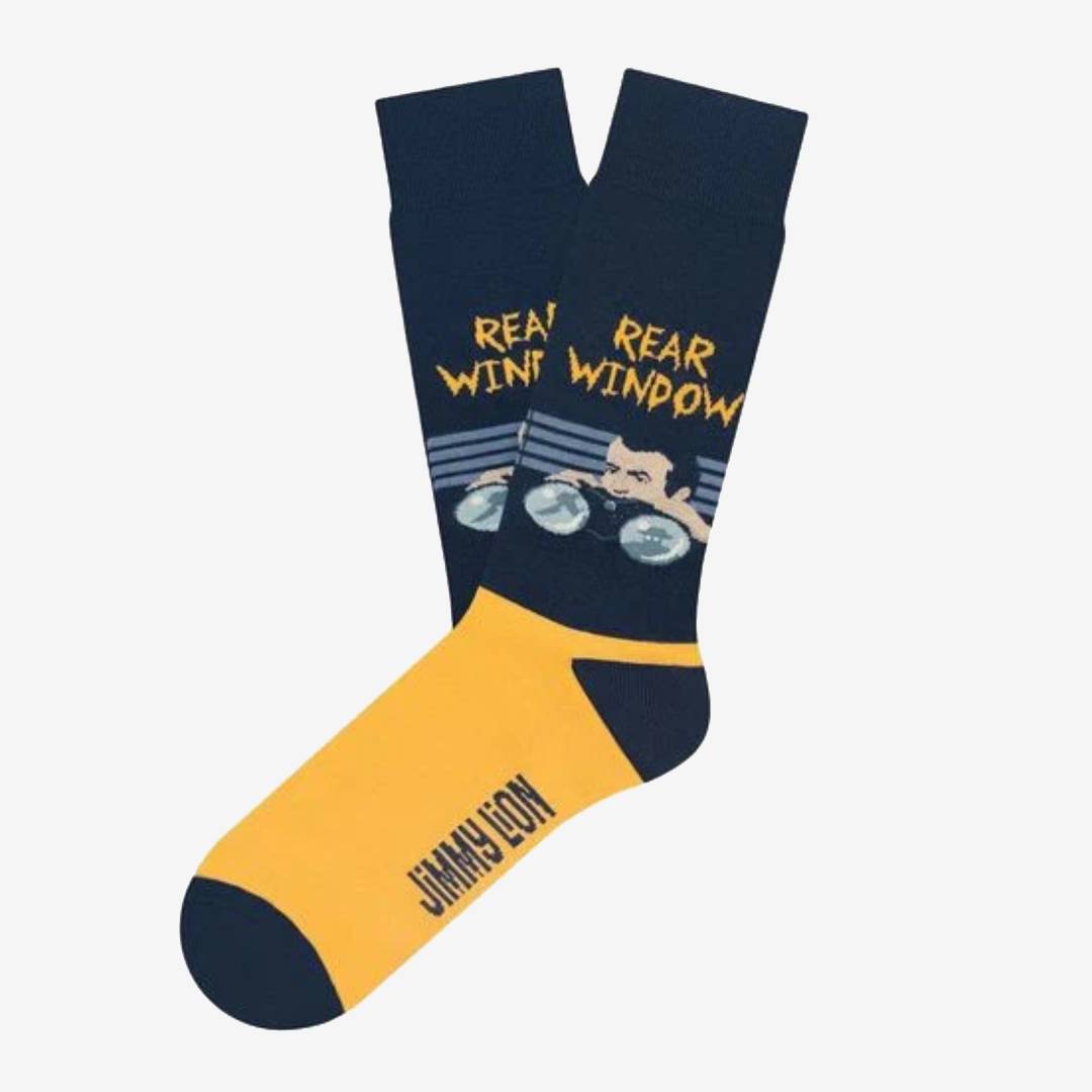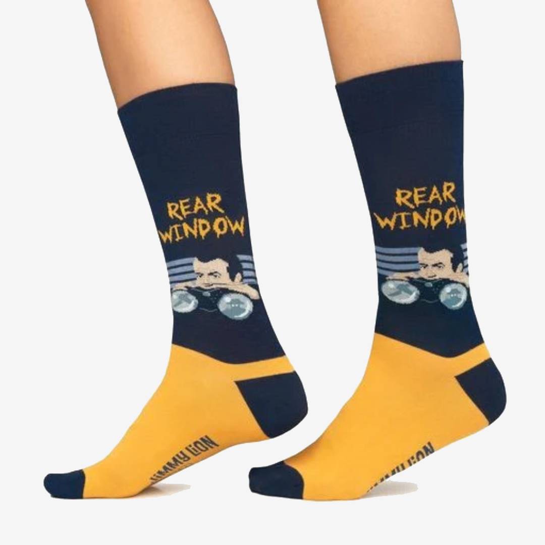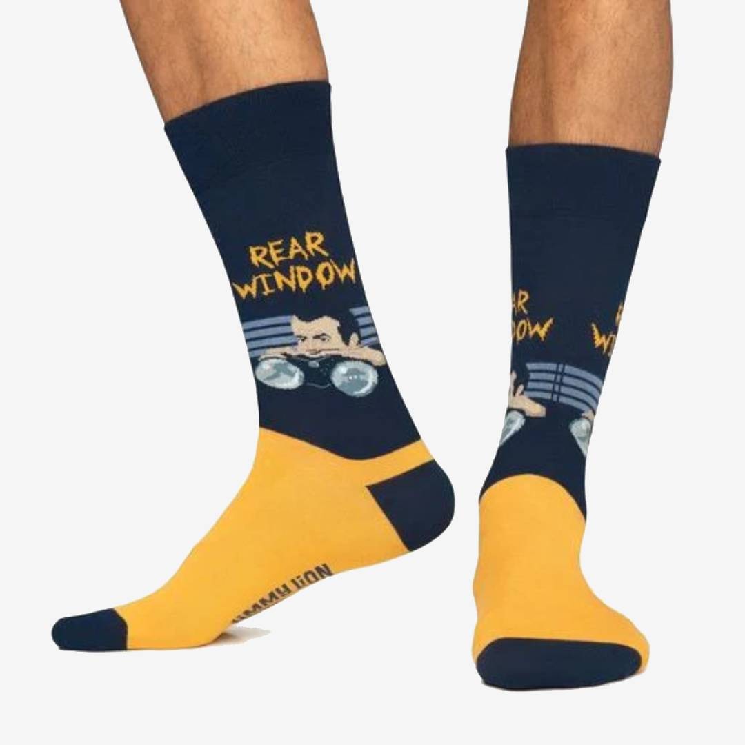 ¿Tienes plan para esta noche? Y no, no hace falta que imites la trama de la popular película La Ventana Indiscreta™ de Hitchcock. De hecho, solo te permitiremos usar los prismáticos para apreciar los detalles de este original diseño en el que el protagonista Jeff es testigo de una escena totalmente terrorífica. La silueta de un cuchillo a través de la lente y el contraste de colores azul y amarillo entre la parte superior e inferior del calcetín los hacen totalmente irresistibles. ¿Te atreves con este diseño tan misterioso?