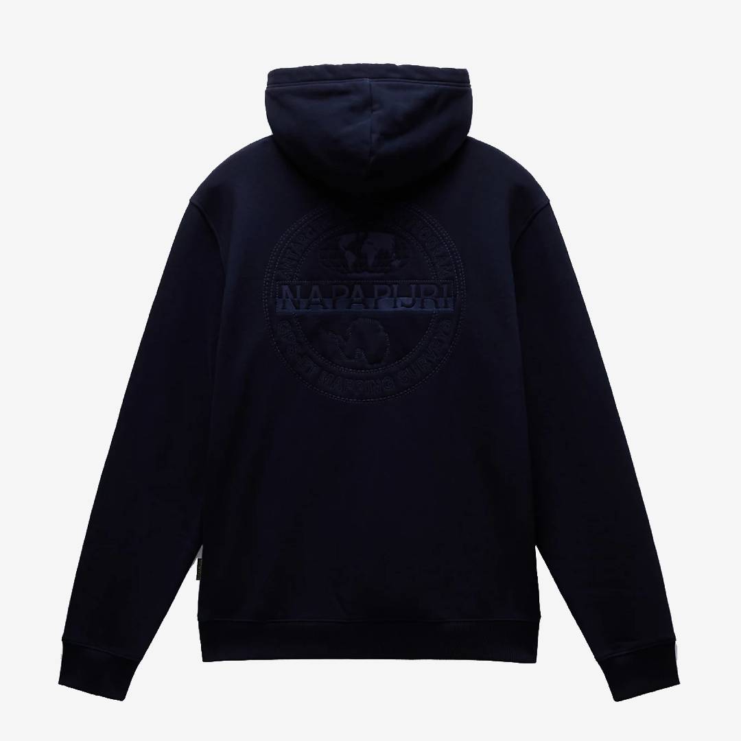 La sudadera con capucha Kander presenta un diseño de líneas sencillas y depuradas, acabado con capucha ajustable, ojales bordados, cuello redondo y nuestro estampado gráfico de archivo Antarctic Research en la espalda en honor a la herencia de exploración de Napapijri.