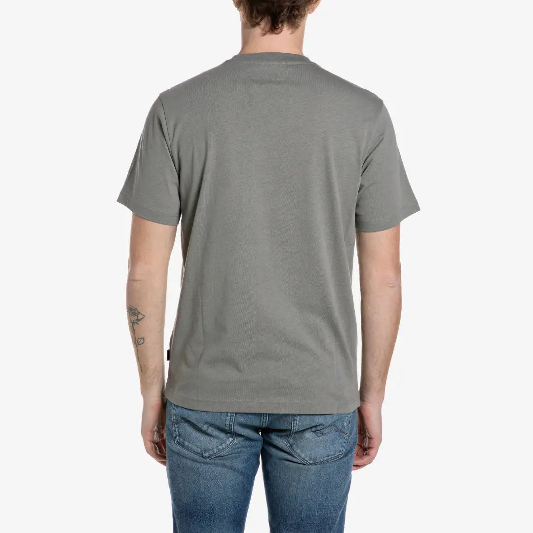 Camiseta de corte regular de cuello redondo confeccionada en punto fresco de algodón y lino. El modelo de manga corta se caracteriza por la inscripción del logotipo estampada en contraste en el pecho y por la icónica etiqueta Replay en forma de banderín en el lateral, que expresan todo el ADN de la marca.