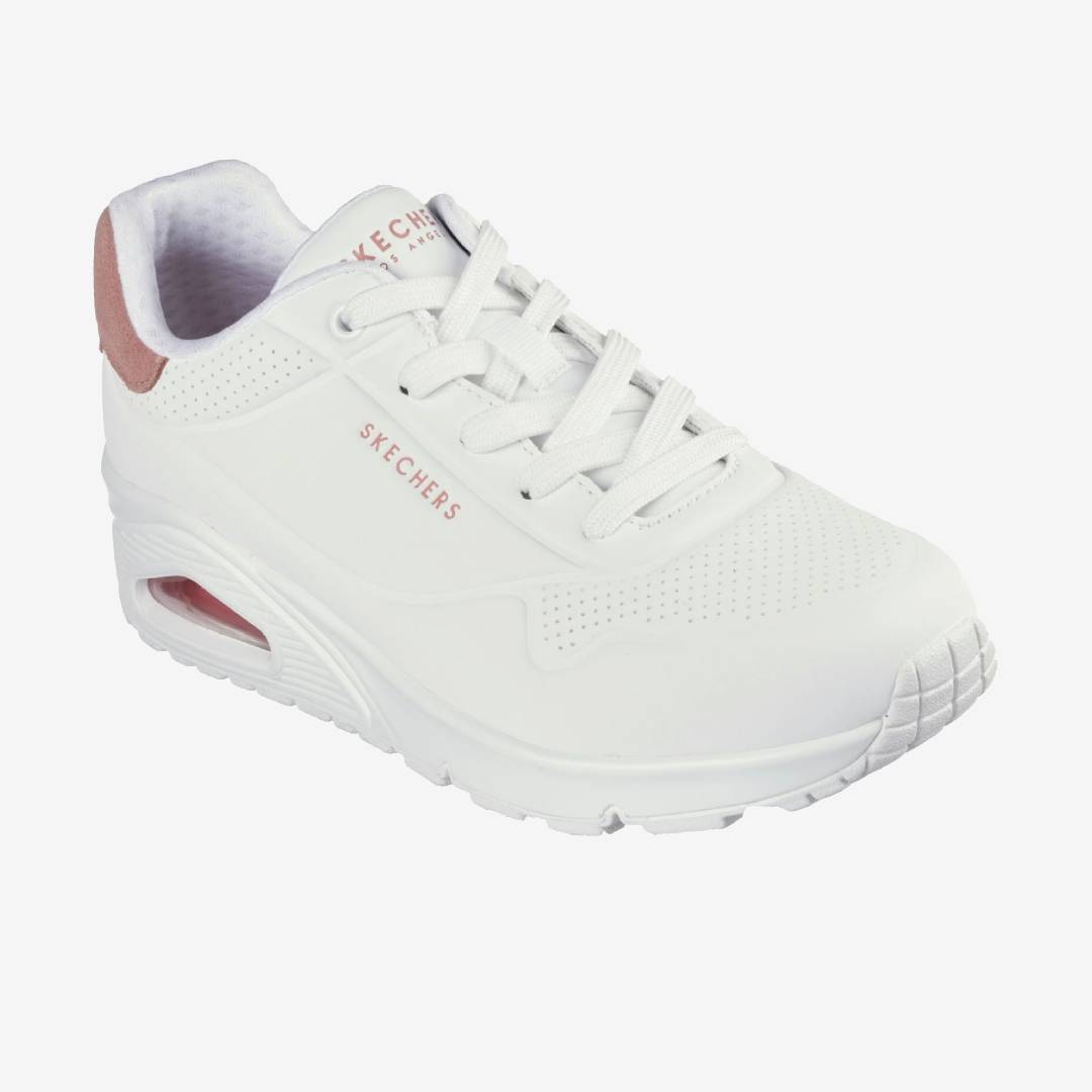 Marca tendencia con la comodidad de la Skechers Street™ Uno - Pop Back. Este jogger moderno con cordones incluye una parte superior de durabuck con ribetes de ante en contraste, una media suela con cámara de aire visible Skech-Air®, una plantilla Skechers Air-Cooled Memory Foam® y un segundo juego de cordones.