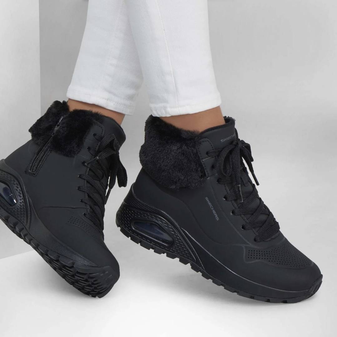 Con la Skechers Street™ Street Uno Rugged - Fall Air darás un salto al estilo excursionista. Moderna zapatilla bota con cordones con parte superior de piel sintética perforada con ribete de forro de pelo sintético, SKECHERS Air Cooled Memory Foam® y media suela con cámara de aire visible Skech-Air®.